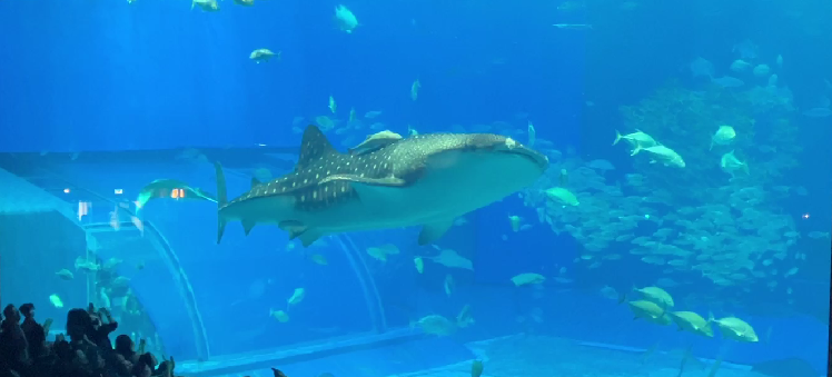沖縄美ら海水族館は、かつての沖縄海洋博の開催地である海洋博公園内にある世界最大級の水族館です。 「沖縄の海を丸ごと体感する」をコンセプトに、浅瀬から黒潮、深海へと潜るような造りになっています。 最大の見どころは、容量7,500立方メートルの巨大水槽「黒潮の海」です。 全長8.8mを超えるジンベエザメの長期飼育や、世界初の繁殖に成功したナンヨウマンタの群泳は圧巻の迫力です。 ジンベイザメのモニュメントです。 水族館入口は駐車場と同じ高さにあるジンベエザメのモニュメントからエスカレータで1階降ります。 降りた ...