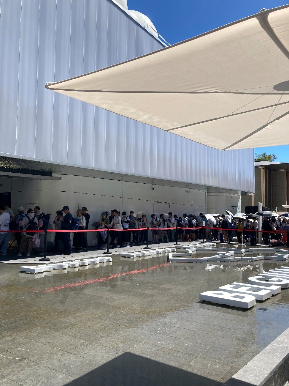 入場は最後の列だけは建物の影に入れましたが、それまでは炎天下を並びました。