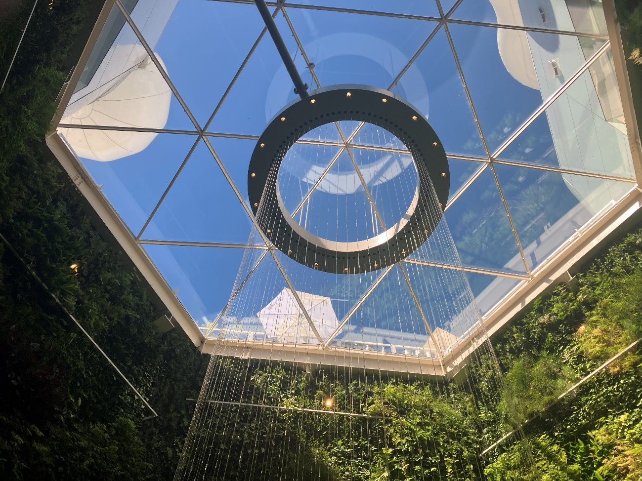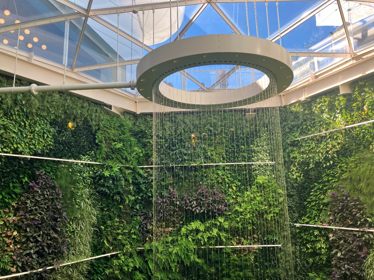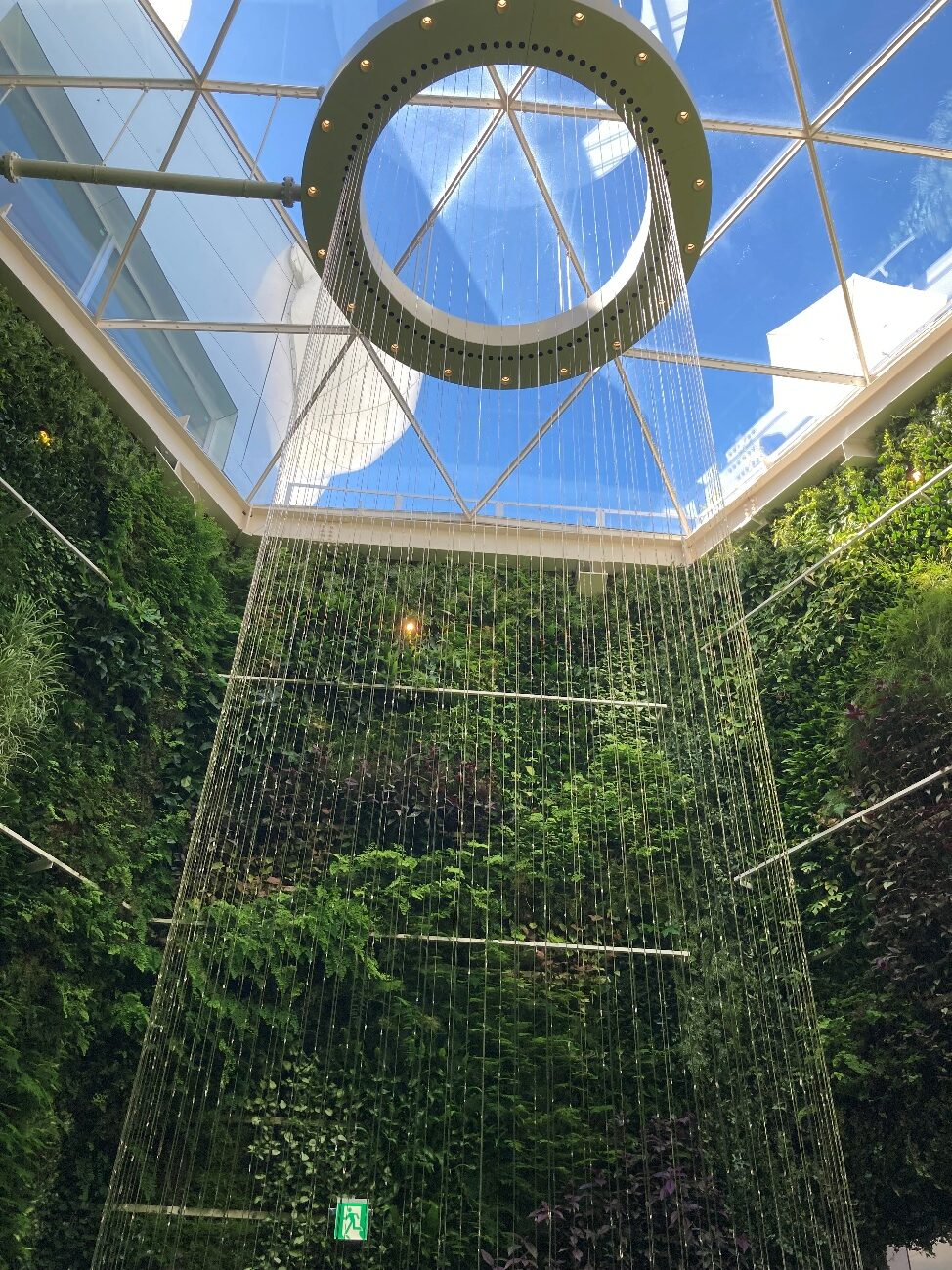 入場すると、壁一面を覆う緑と、涼しげに天井から滴り落ちる水でした。