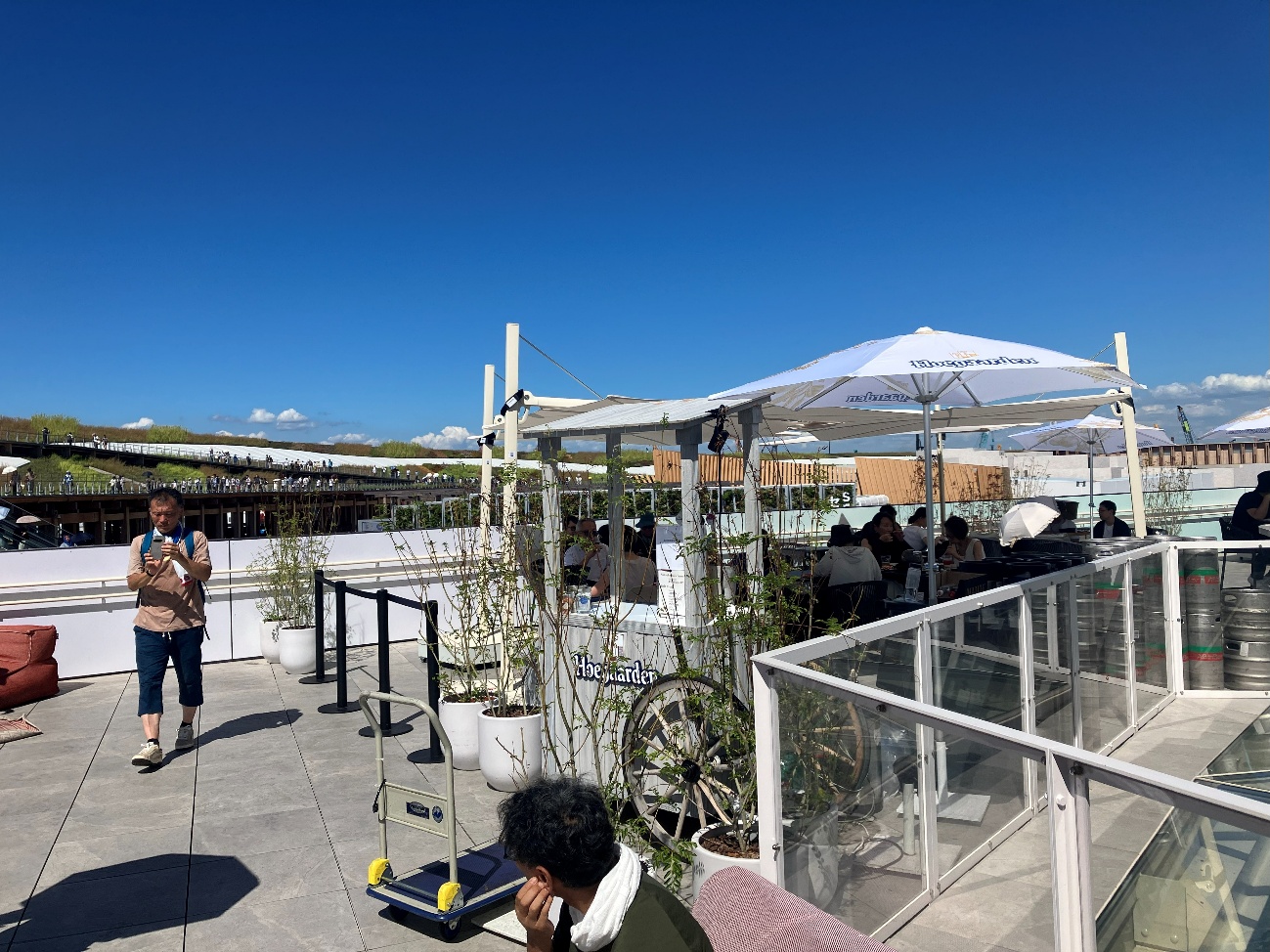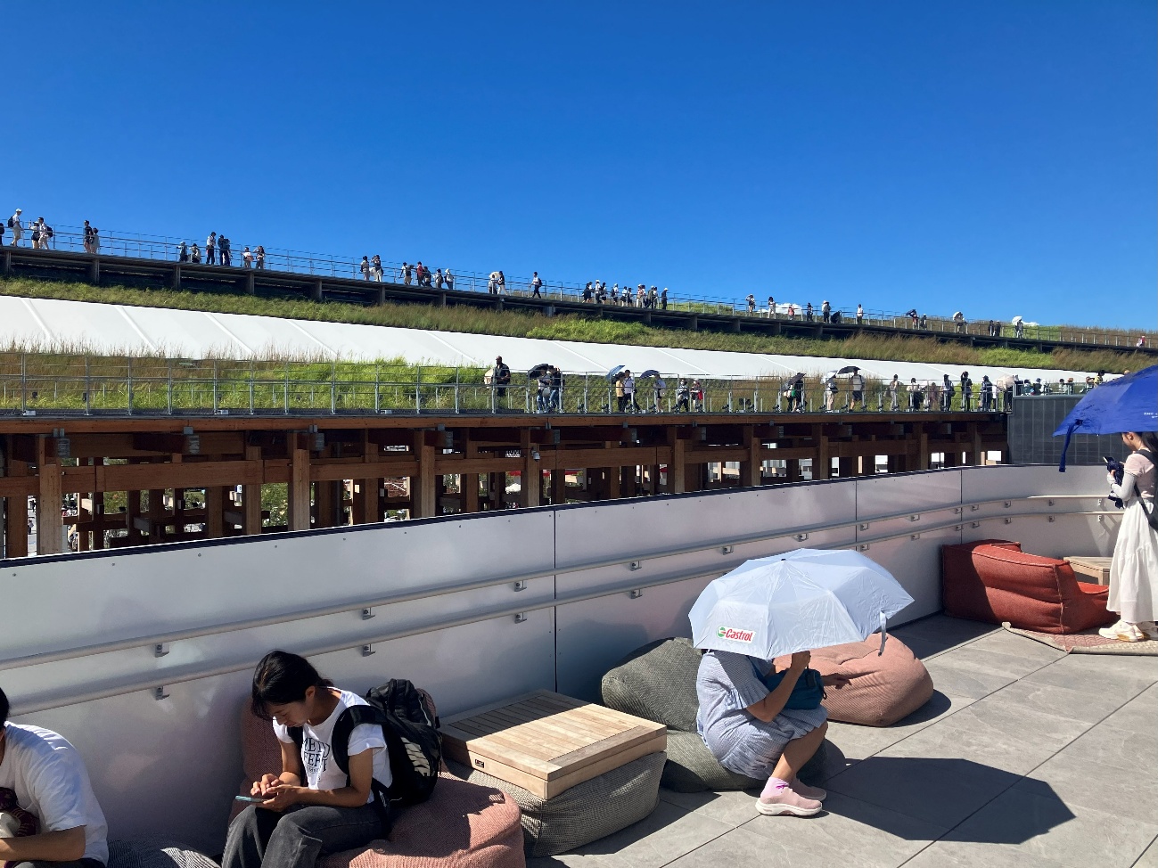 屋上へ登ると、大屋根リングを歩く人たちがよく見えます。