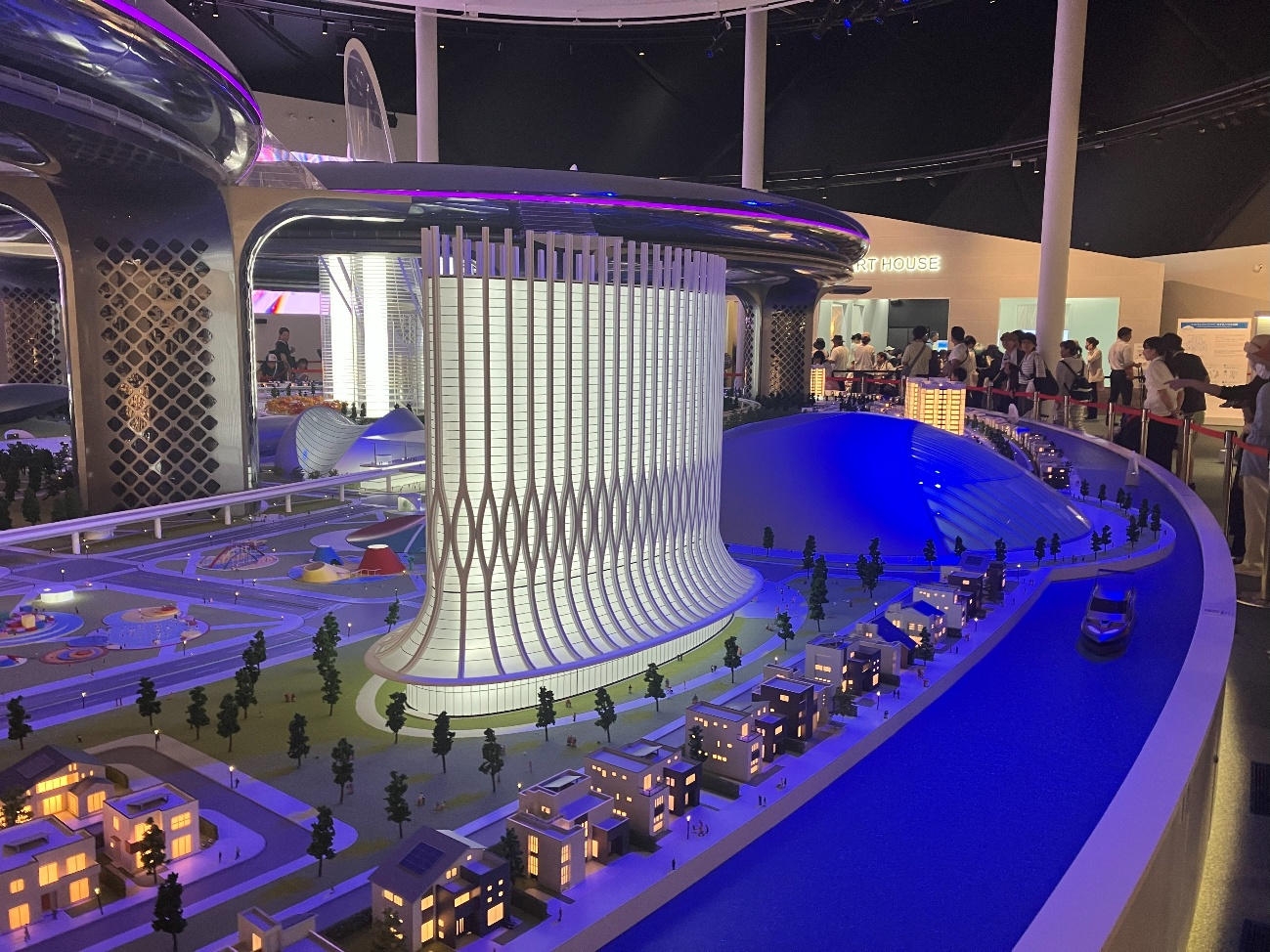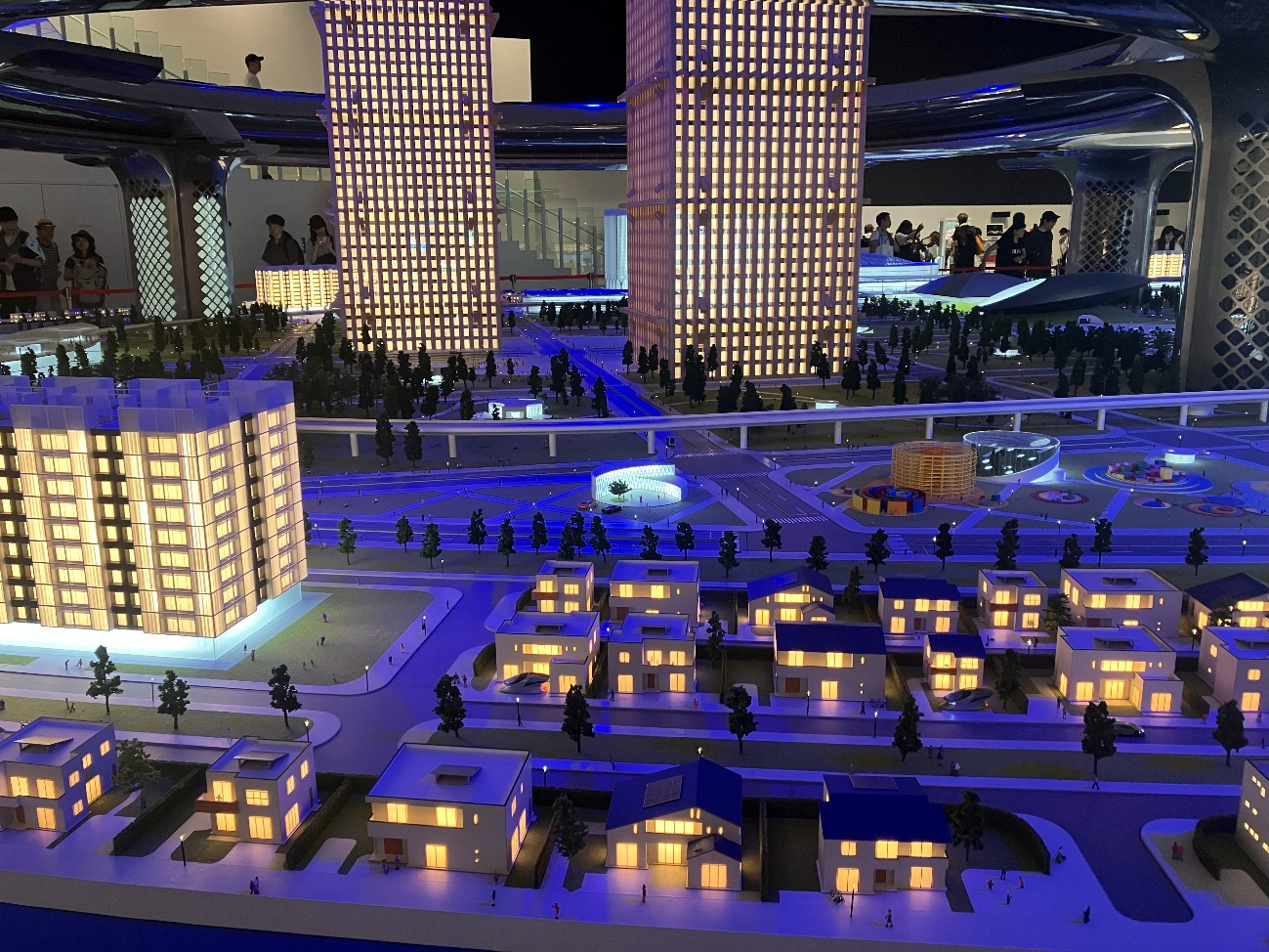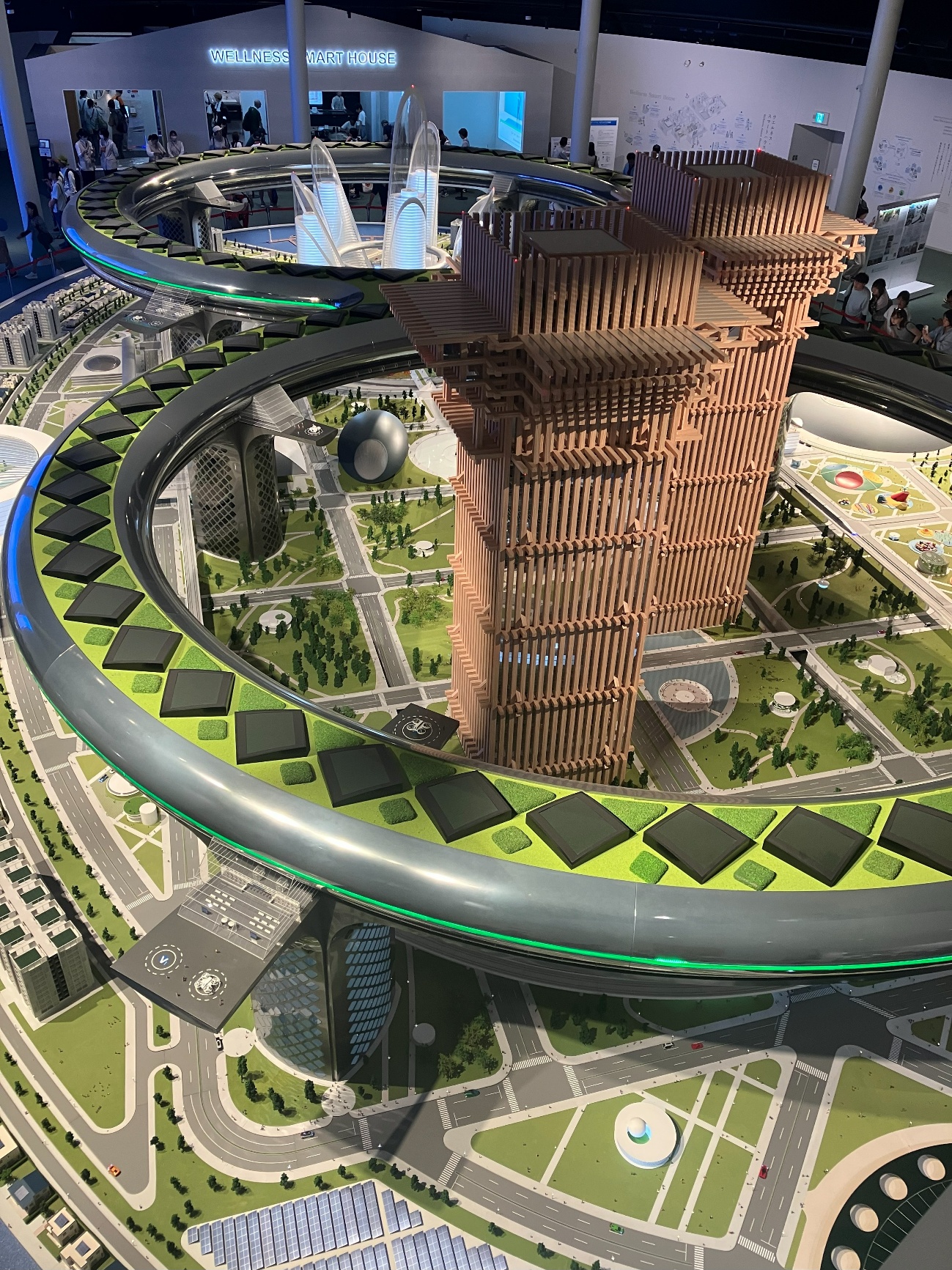 ここでは、未来都市(ウェルネススマートシティー)のジオラマが広いエリアいっぱいに展示されています。