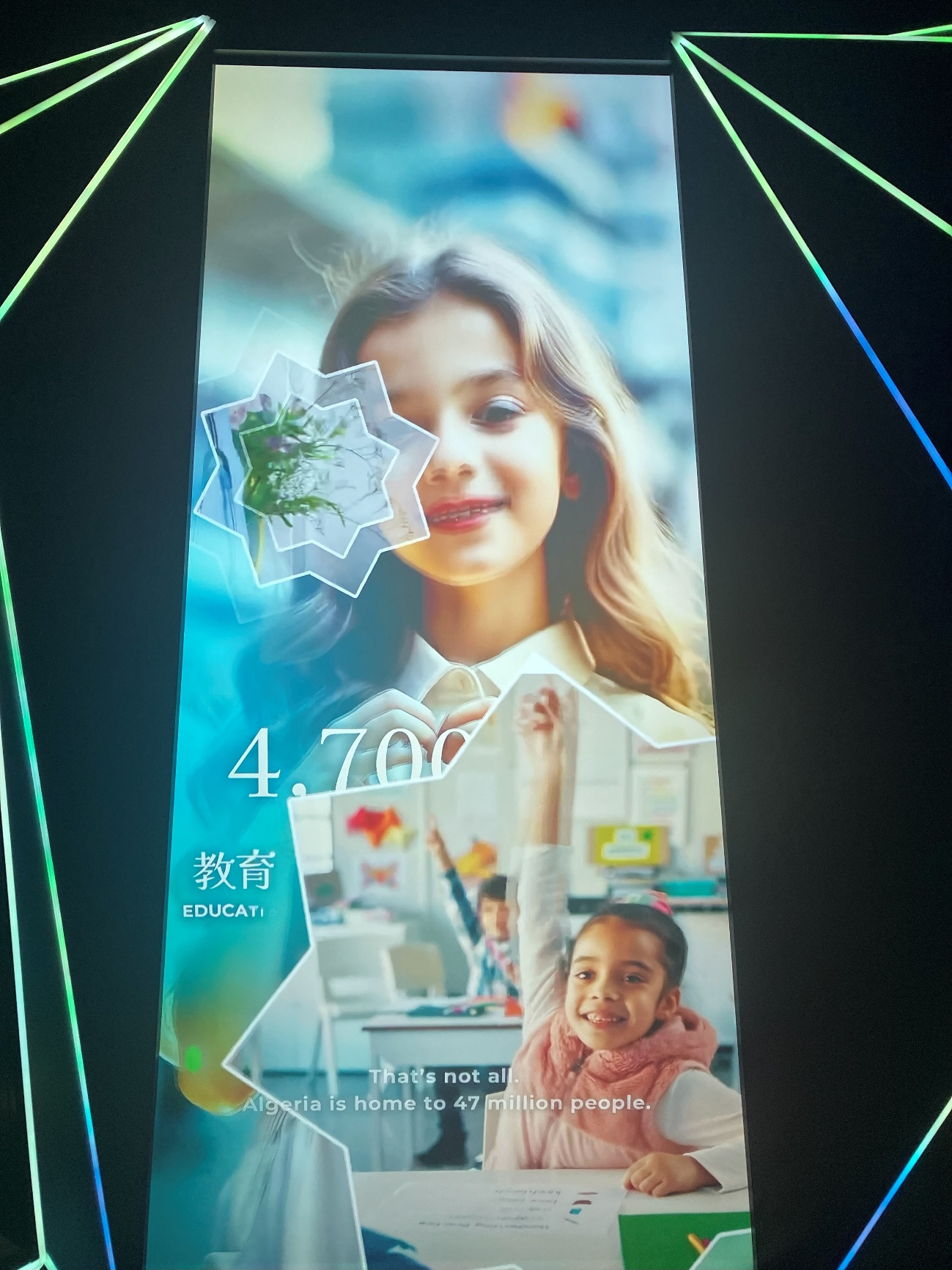 少女ヌールが案内する映像シアターでは、環境問題への取り組みや経済成長の姿も描かれ、来場者は願いを書き残すことで両国の絆を深める体験ができます。