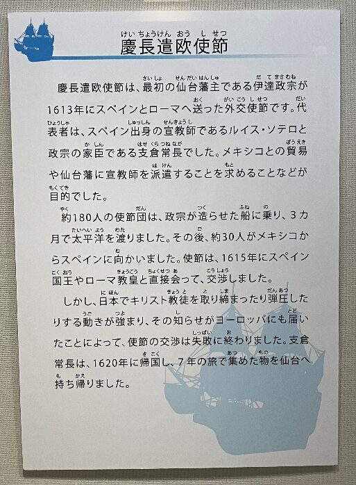 不幸な終末を迎えた常長ですが、こうして現在も仙台でその功績を展示されていることを思うと、報われる気がします。