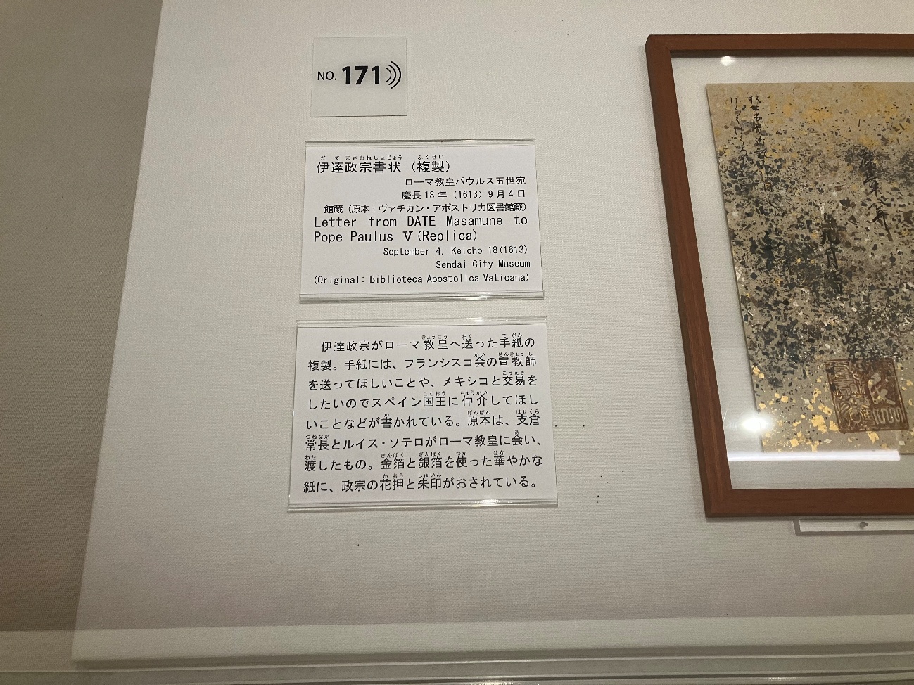 伊達政宗がローマ教皇へ送った手紙の複製。