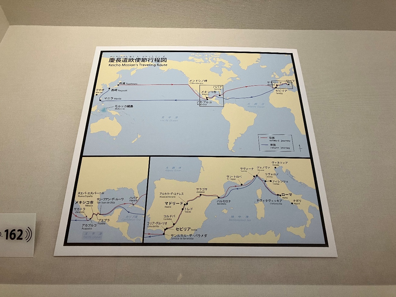 1613年10月に出帆した慶長遣欧使節は、当時スペイン領だったメキシコを経由して、 翌年にスペイン、 さらにその翌年にローマへ到着しました。