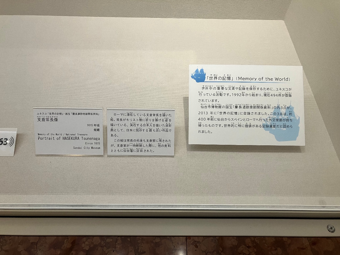 仙台市博物館の国宝 「慶長遣欧使節関係資料」 の内3点が、2013年に「世界の記憶」 に登録されました。 この3点は、 約400年前に仙台からスペインとローマへ行った外交使節が持ち帰ったものです。