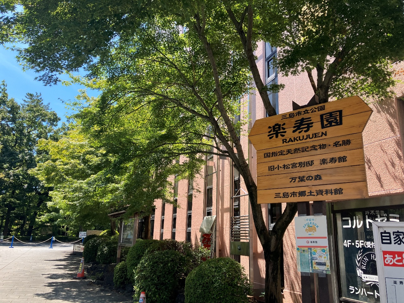 三島市立公園・楽寿園は、三島駅南口に隣接する約7.5万㎡の市立公園で、明治23年に小松宮彰仁親王の別邸として造営されたことに始まります。