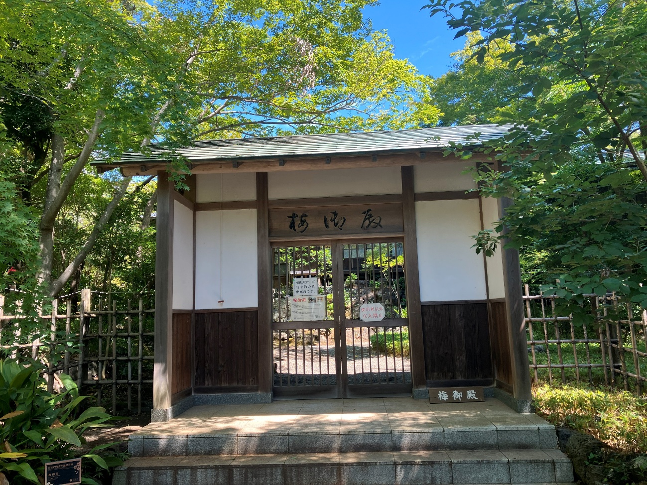 池に臨む主座敷の床柱に太い梅の木が使われていることから「梅御殿」と呼ばれるようになりました。