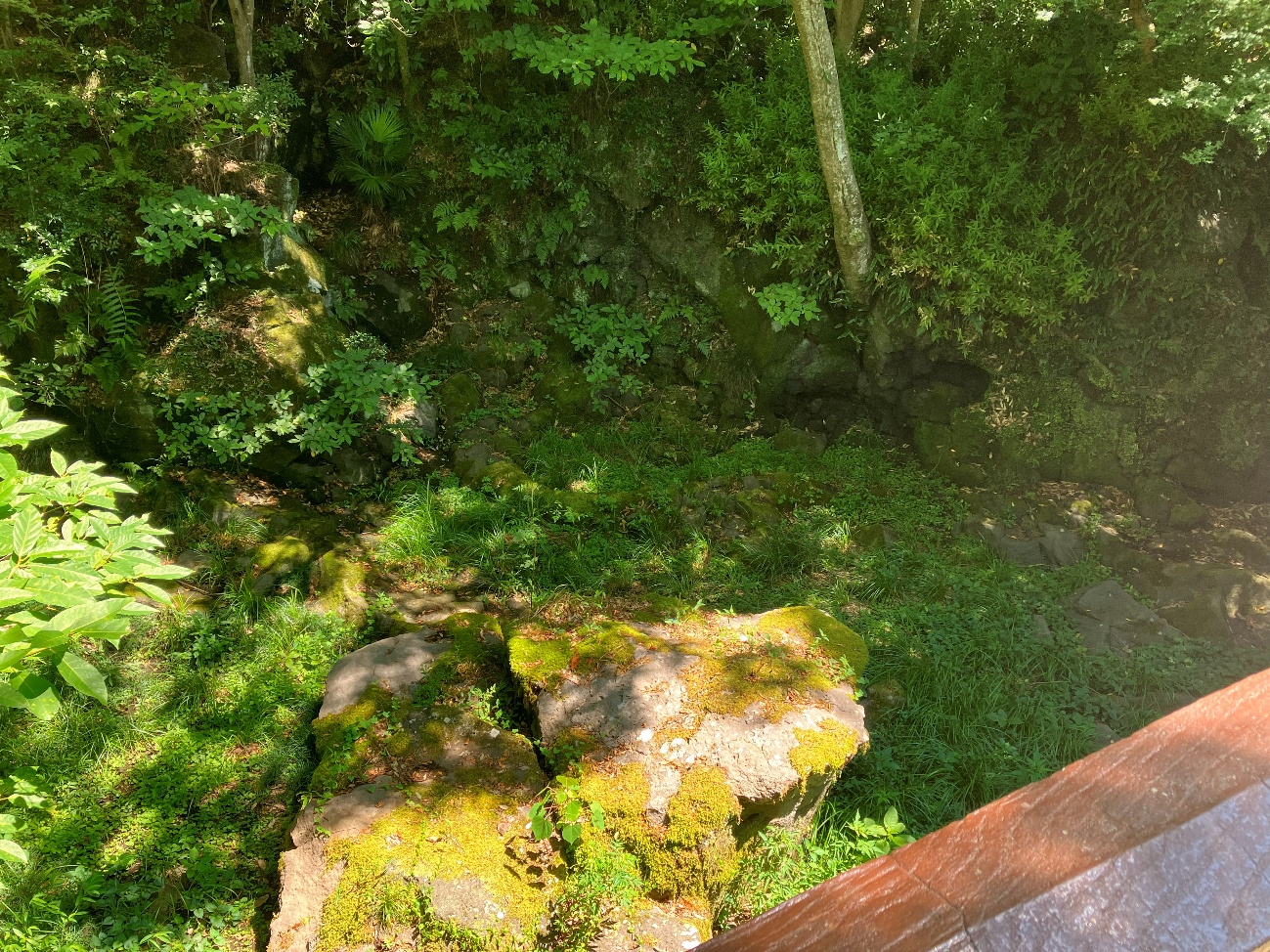 建物周辺は、富士山溶岩流上に実生した自然材と、湧き出る天然の池泉を巧みに利用し、その自然美に人工の妙を加えた築庭がなされています。