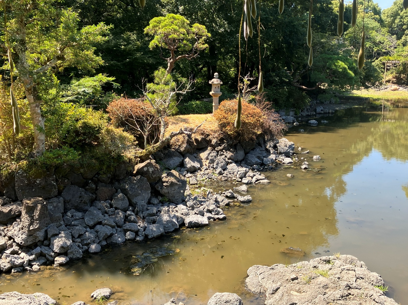 一方、気泡の多い溶岩は「小浜石」と呼ばれ、 石垣や礎石、緑石 用水路の堤などに利用され、 現在、 園内だけでなく市内のいたるところで見ることができます。