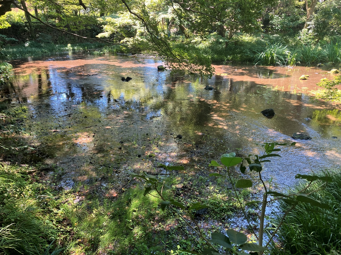 建物の前の池はかつて湧水でなみなみとした水が張っていたという事ですが、今は満水になる時期は限られているとのことです。