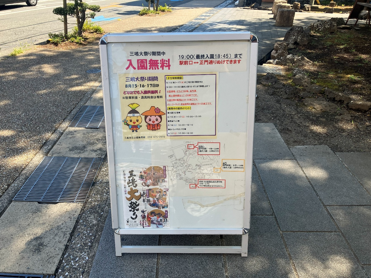 三島大祭り(8/15,16,17)期間中は入場無料でした。