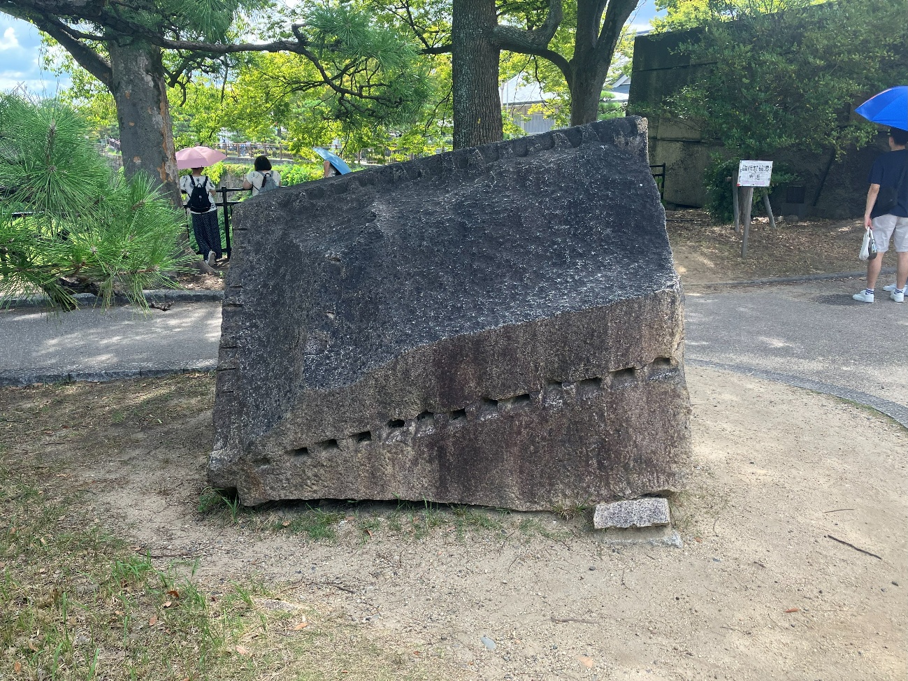 池田忠雄が備前国(現在の岡山県)でこの石を採石し、100km以上離れた大阪城まで運びました。