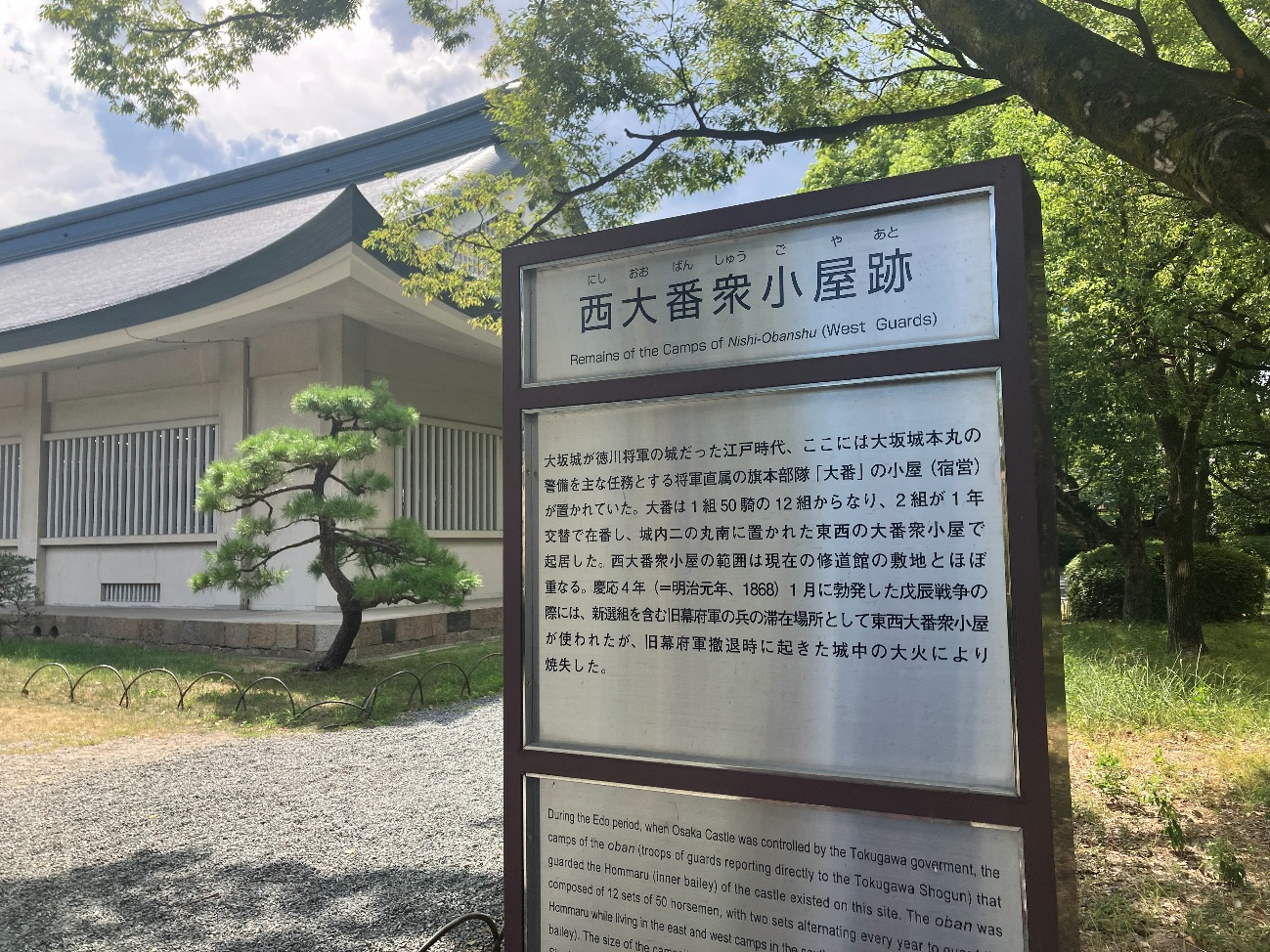 大坂城が徳川将軍の城だった江戸時代、ここには大坂城本丸の警備を主な任務とする将軍直属の旗本部隊 「大番」 の小屋 (宿営)が置かれていた。