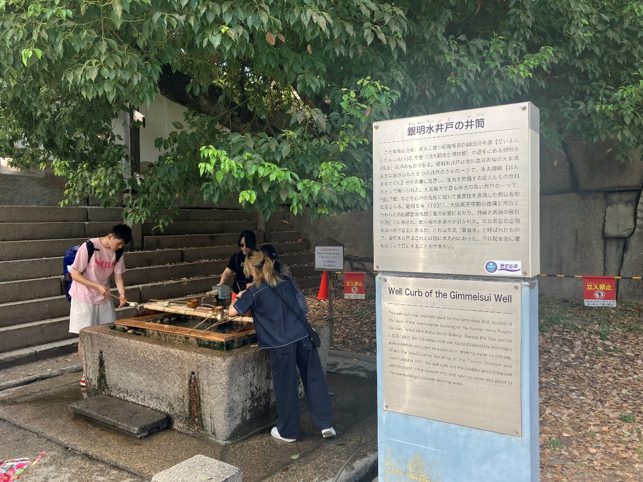 この井筒は元来、 本丸に建つ旧陸軍第四師団司令部 【だいよんしだんしれいぶ】 庁舎 (旧大阪市立博物館) の裏手にある銀明水(銀水) 井戸のものである。