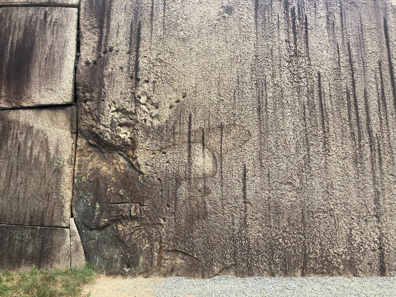 それを示す様に、石の表面には巨石を割り出すのに用いた矢がねという楔のような道具を打ち込んだ痕があります。