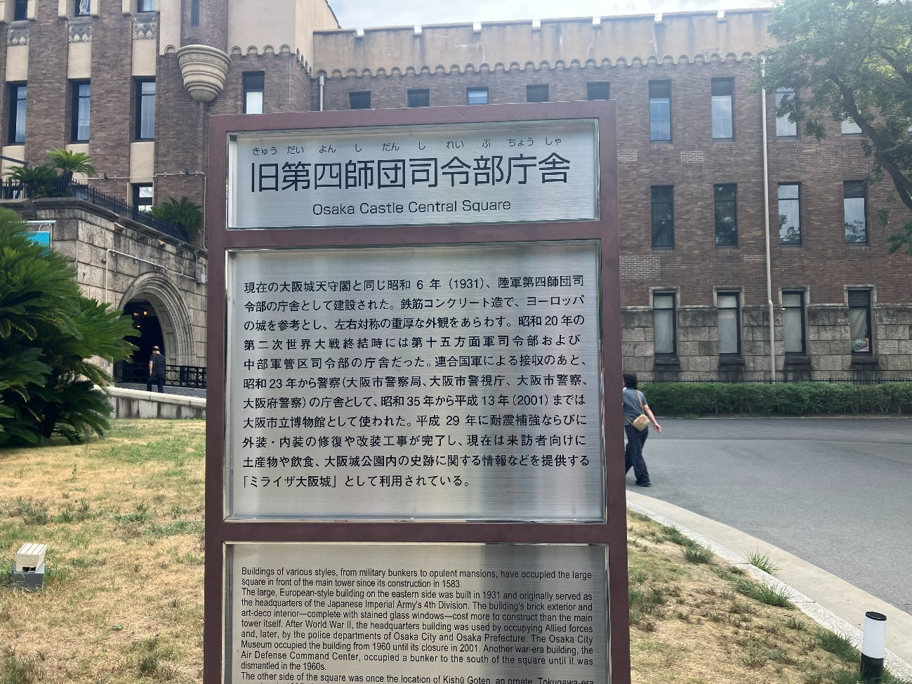 現在の大阪城天守閣と同じ昭和 6 年 (1931)、 陸軍第四師団司令部の庁舎として建設された。