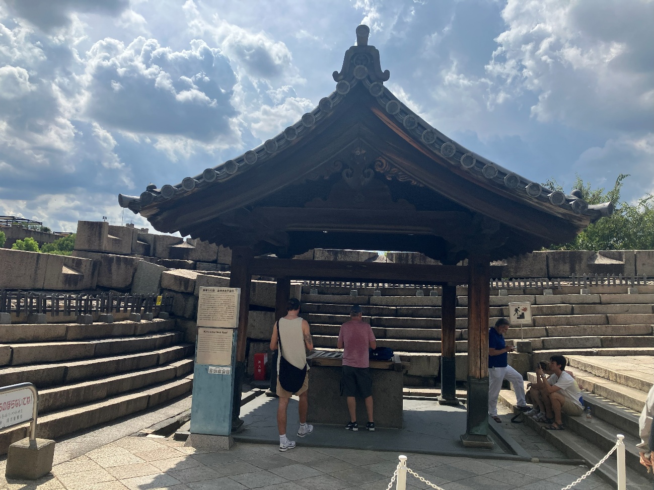 大坂城の小天守台 【しょうてんしゅだい】 にある井戸を金明水といい、それを覆う面積 11.55 平方メートル、高さ 5.2メートルの建物を金明水井戸屋形という。