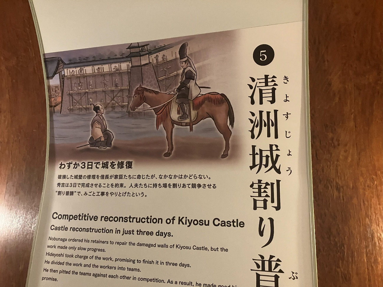 破損した城壁の修理を信長が家臣たちに命じたが、 なかなかはかどらない。