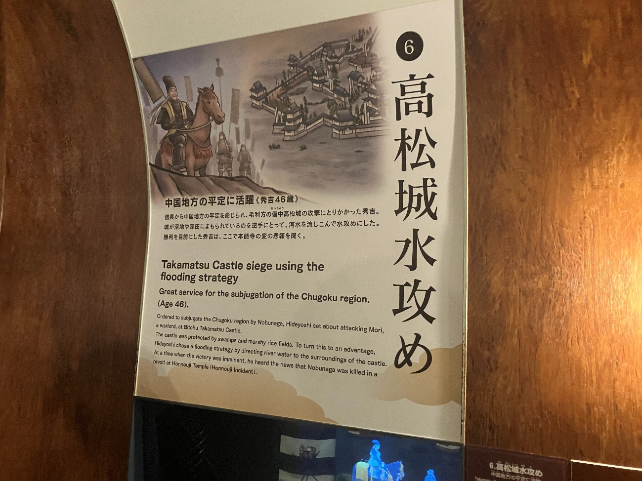 勝利を目前にした秀吉は、ここで本能寺の変の悲報を聞く。