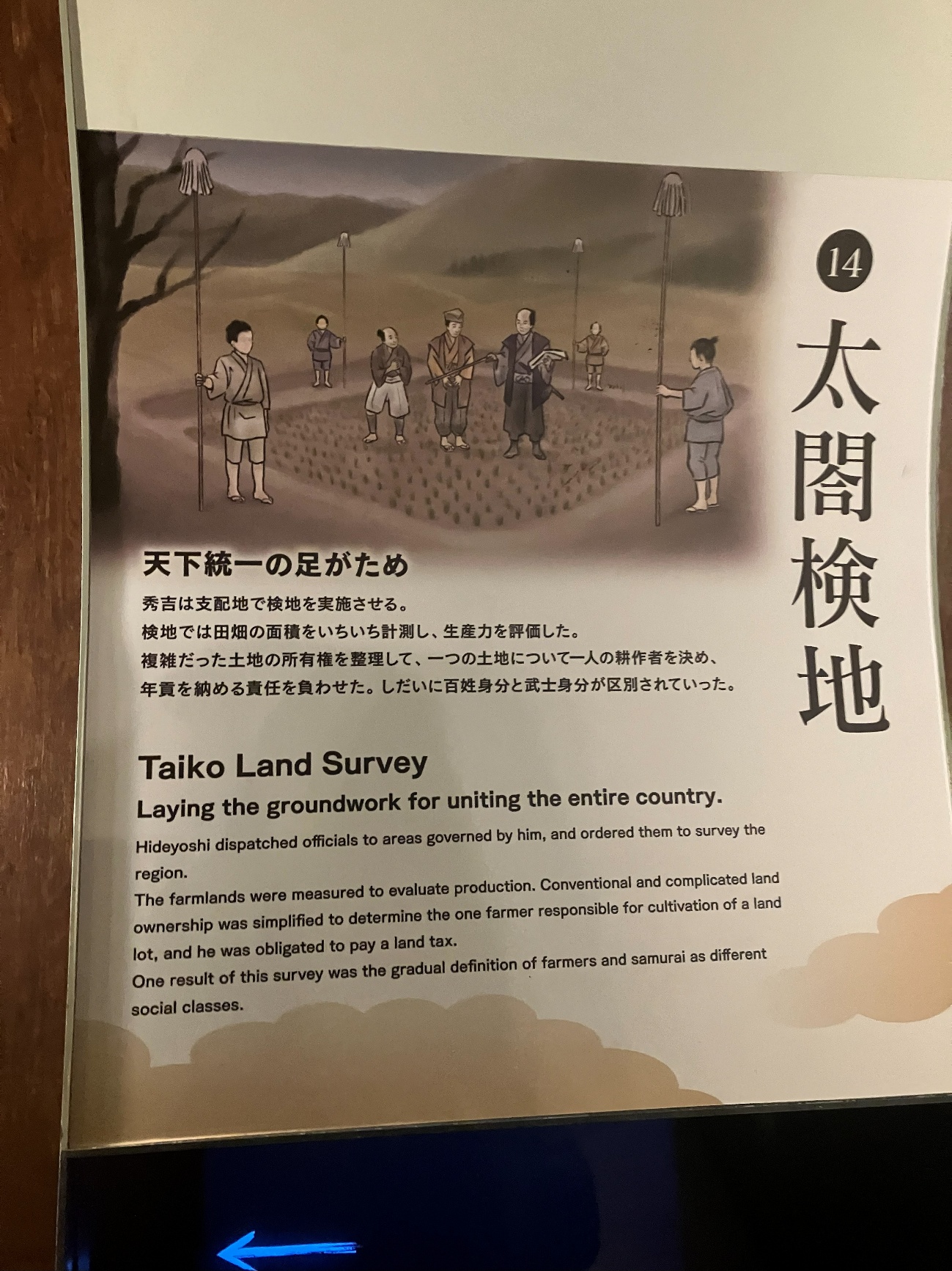複雑だった土地の所有権を整理して、一つの土地について一人の耕作者を決め、年貢を納める責任を負わせた。しだいに百姓身分と武士身分が区別されていった。