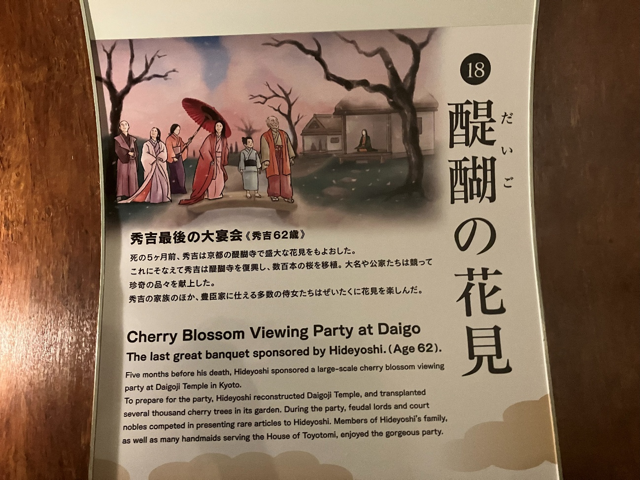 秀吉の家族のほか、豊臣家に仕える多数の侍女たちはぜいたくに花見を楽しんだ。