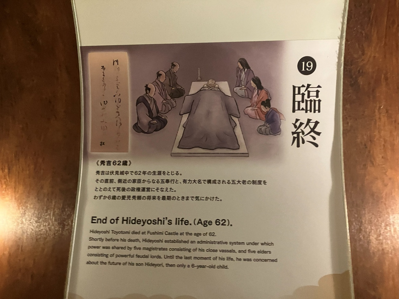 その直前、側近の家臣からなる五奉行と、有力大名で構成される五大老の制度をととのえて死後の政権運営にそなえた。