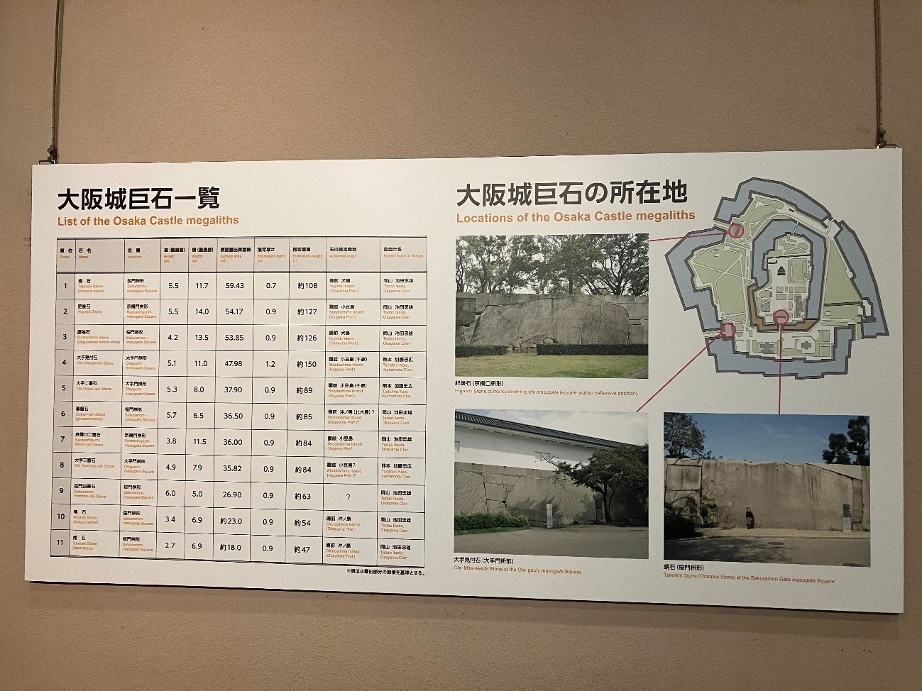大阪城内刻印石所在地図