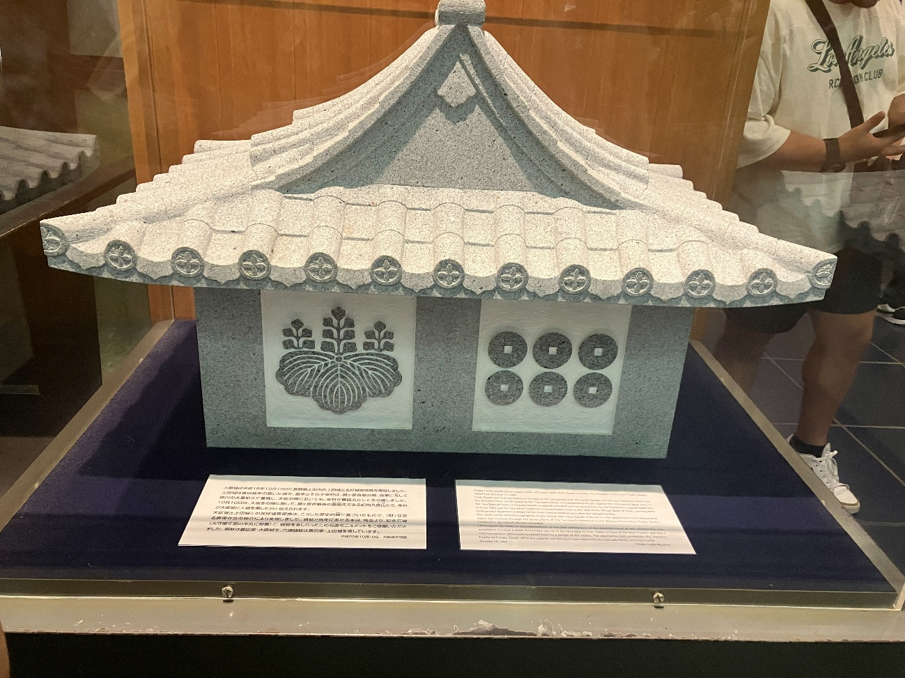 大阪城と上田城との友好城郭提携は、こうした歴史的に基づいたもので、(財) 住吉名勝保存会の仲介により実現しました。締結2周年にあたる本日、同会より、記念石碑(天守閣正面の本丸に設置) と、 城郭をあしらったこの石造モニュメントをご寄贈いただきました。