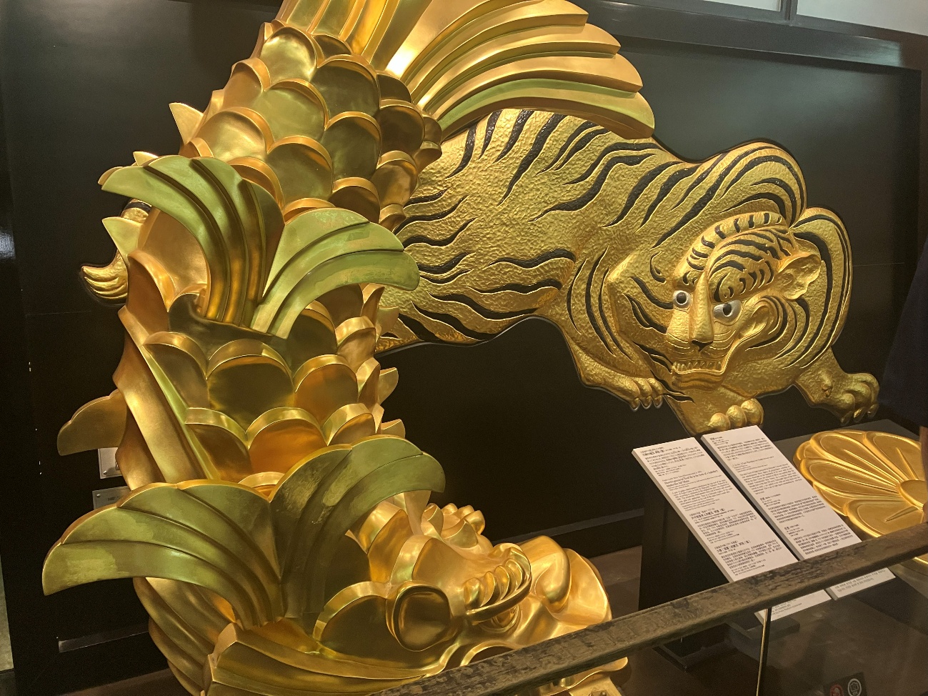 こちらは天守の金シャチと、壁にある虎の造形物だったでしょうか。