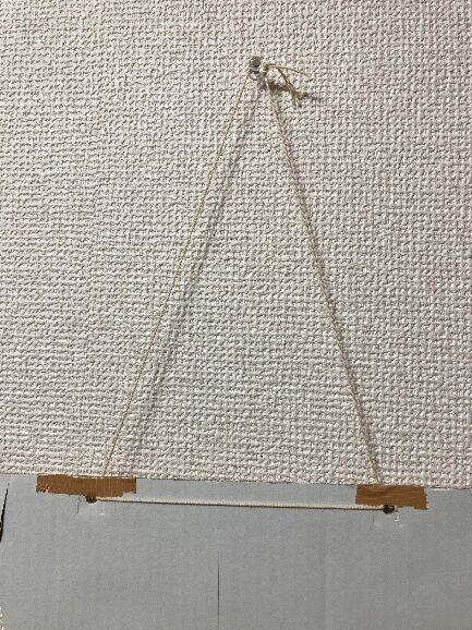 • 台紙になる段ボールに吊るす用のタコ糸を付ける。