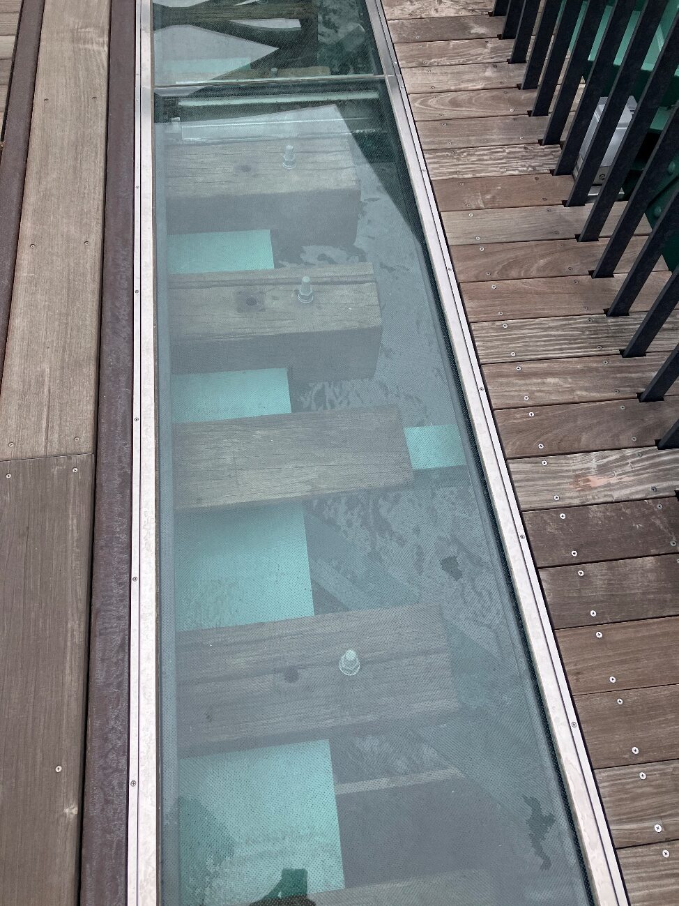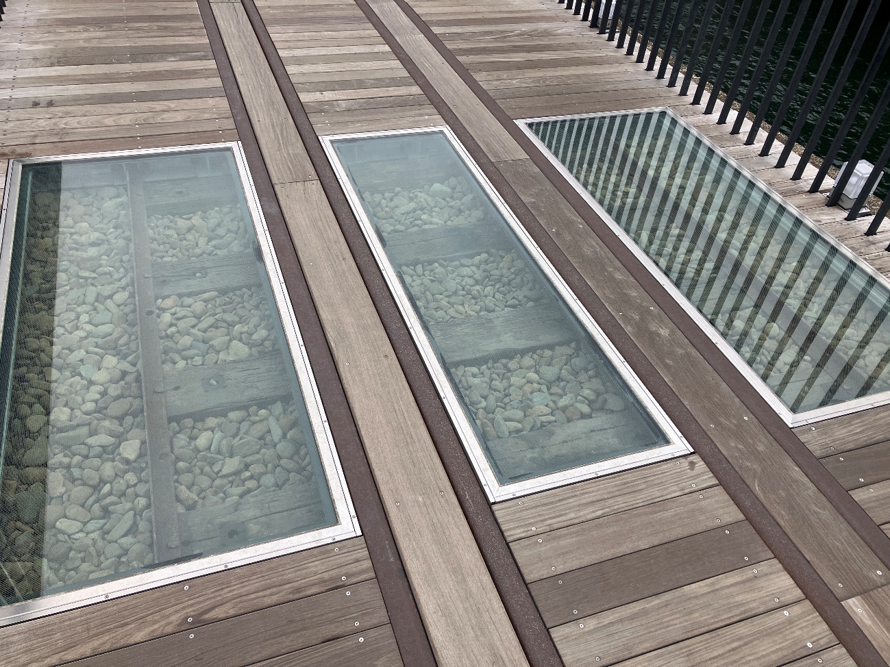 そして、ところどころガラスで下の枕木やレールが見られるようになっています。