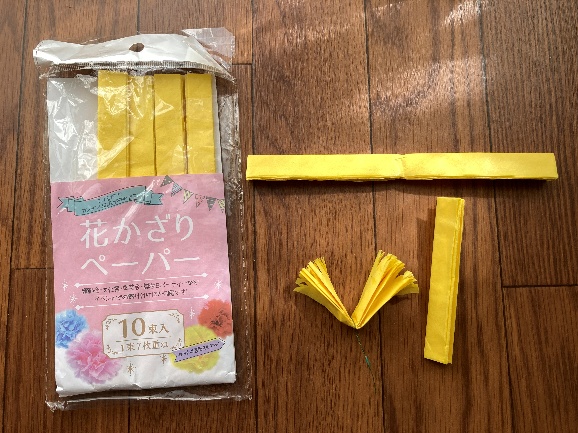 ・お花紙(黄・赤) ・モール(緑) ・マスキングテープ(緑)