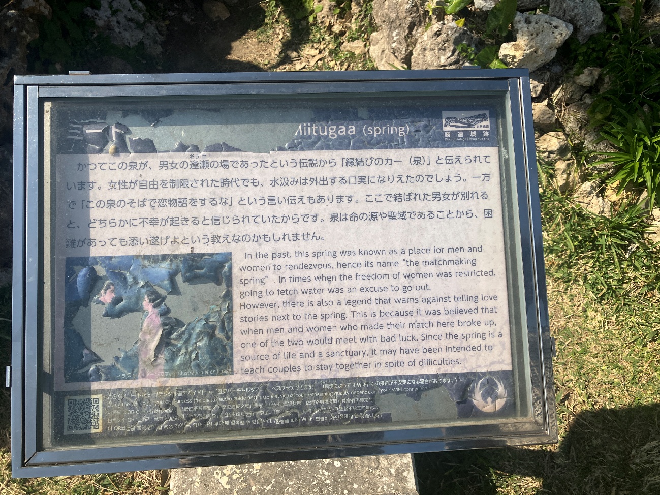 かつてこの泉が、 男女の逢瀬の場であったという伝説から「縁結びのカー(泉)」と伝えられています。