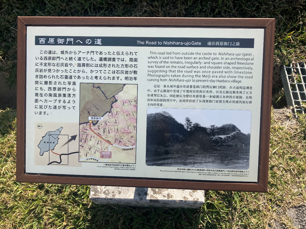 明治年間に撮影された写真にも、 西原御門から現在の南風原集落方面へカーブするように延びた道が写っています。