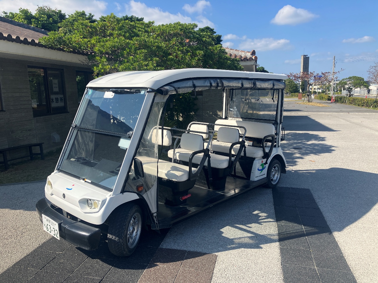 電動カートは、ふもとの石碑付近から、城郭の入り口にあたる「四の曲輪(よんのくるわ)」の広場まで乗せていってくれます。