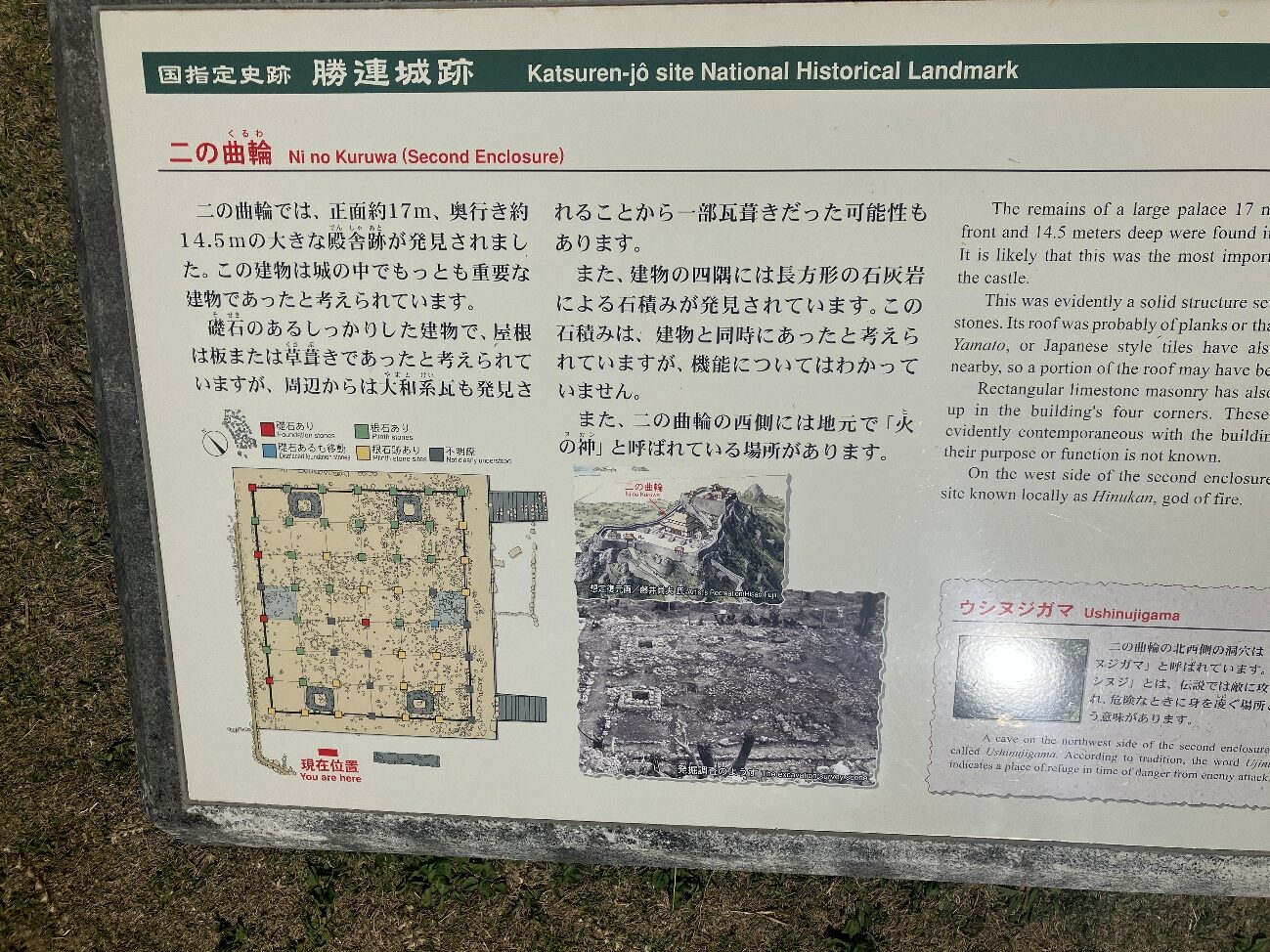 また、 霊石脇にある洞穴は「かつては二の曲輪のウシヌジガマと繋がっており、 有事の際の避難路として使用されていた」という伝説が残されています。
