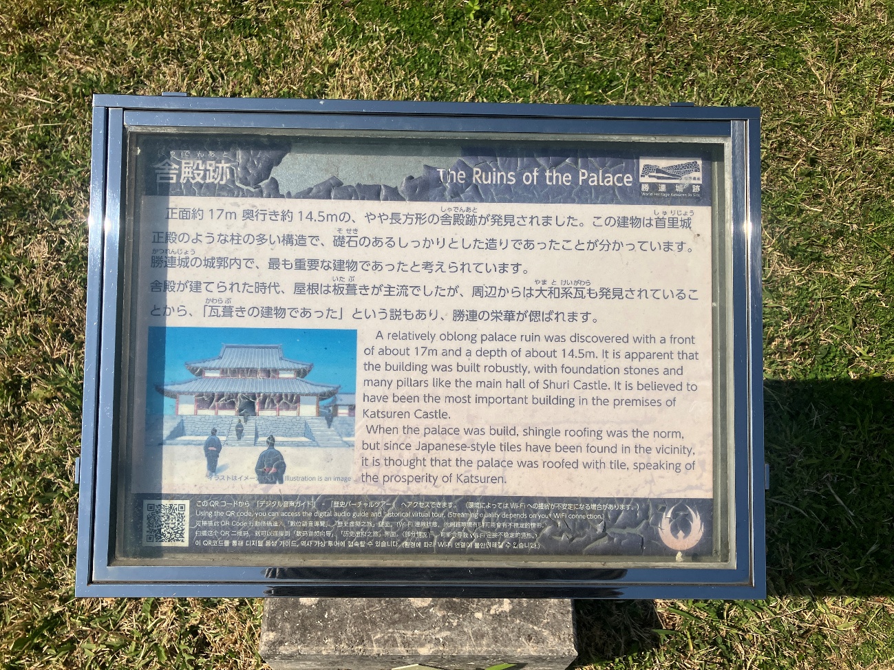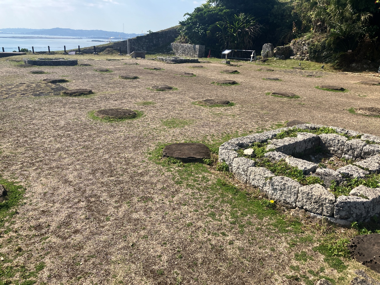 舎殿が建てられた時代、 屋根は板葺きが主流でしたが、 周辺からは大和系瓦も発見されていることから、 「瓦葺きの建物であった」 という説もあり、 勝連の栄華が偲ばれます。