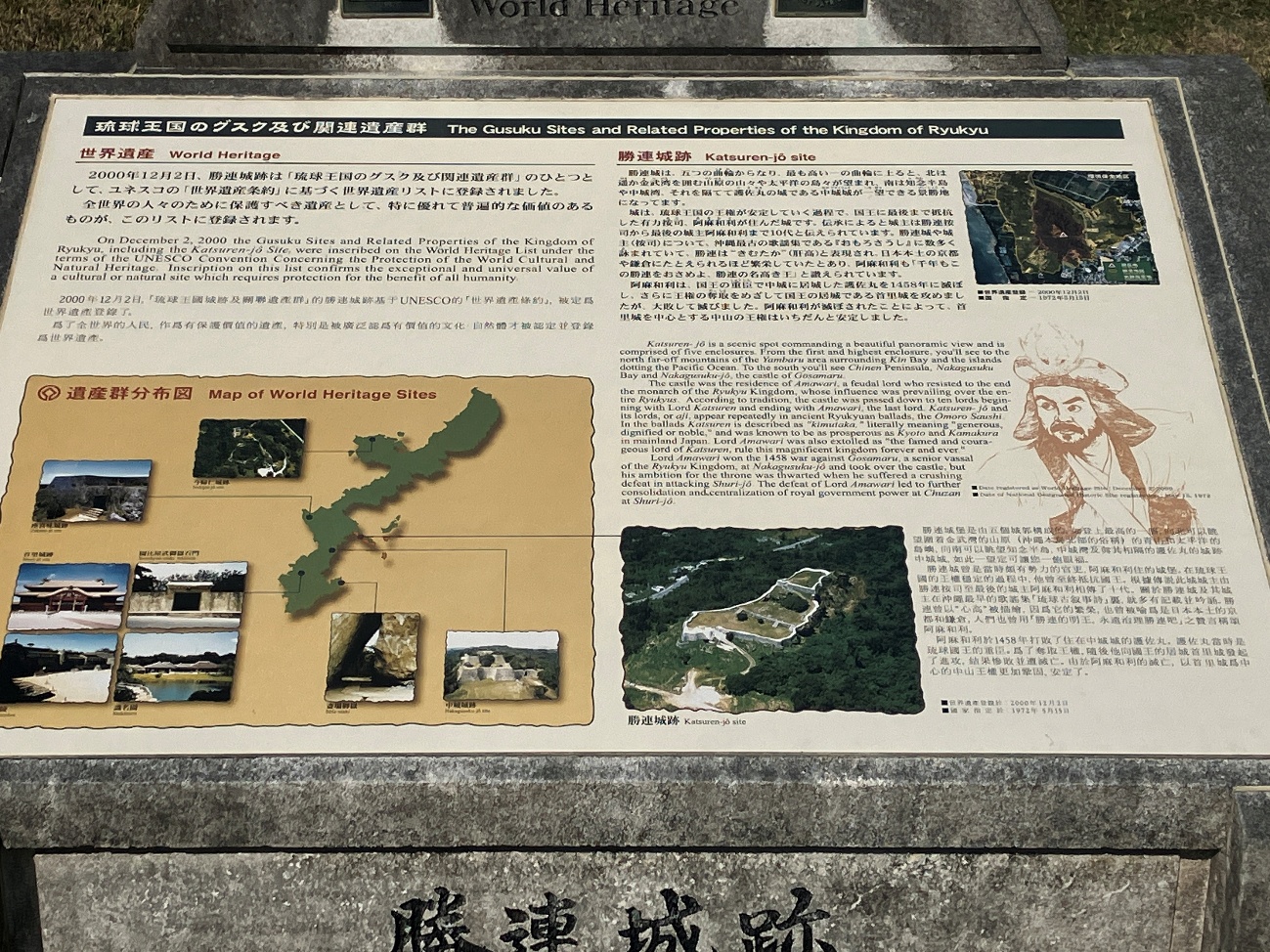 しかし、近年は、「おもろさうし」にうたわれるように、勝連に繁栄をもたらした英雄として改めて評価されるようになりました。