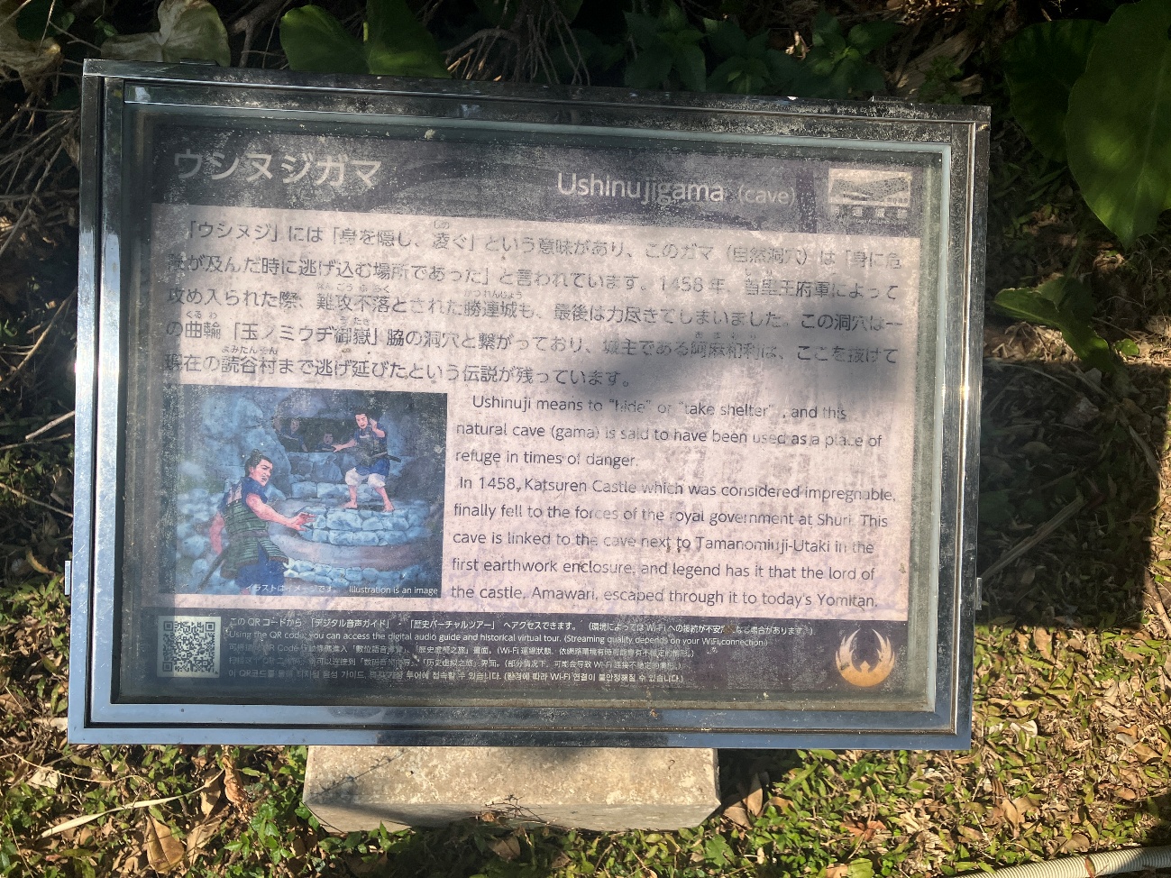 「ウシヌジ」には「身を隠し、凌ぐ」という意味があり、このガマ(自然洞穴)は「身に危険が及んだ時に逃げ込む場所であった」と言われています。