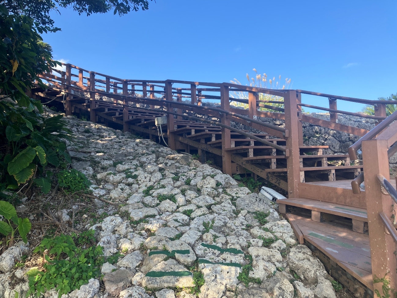 電動カートを降りた後は、この石段を登ります。