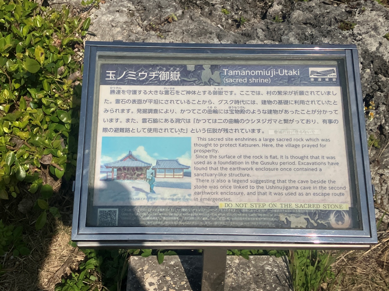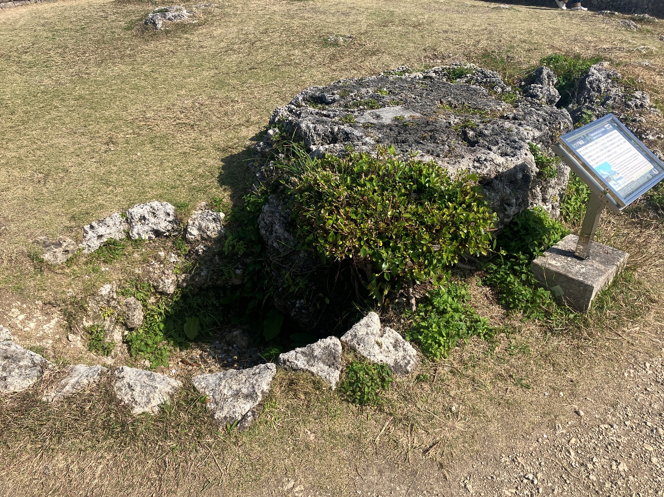 霊石の表面が平坦にされていることから、グスク時代には、建物の基礎に利用されていたとみられます。