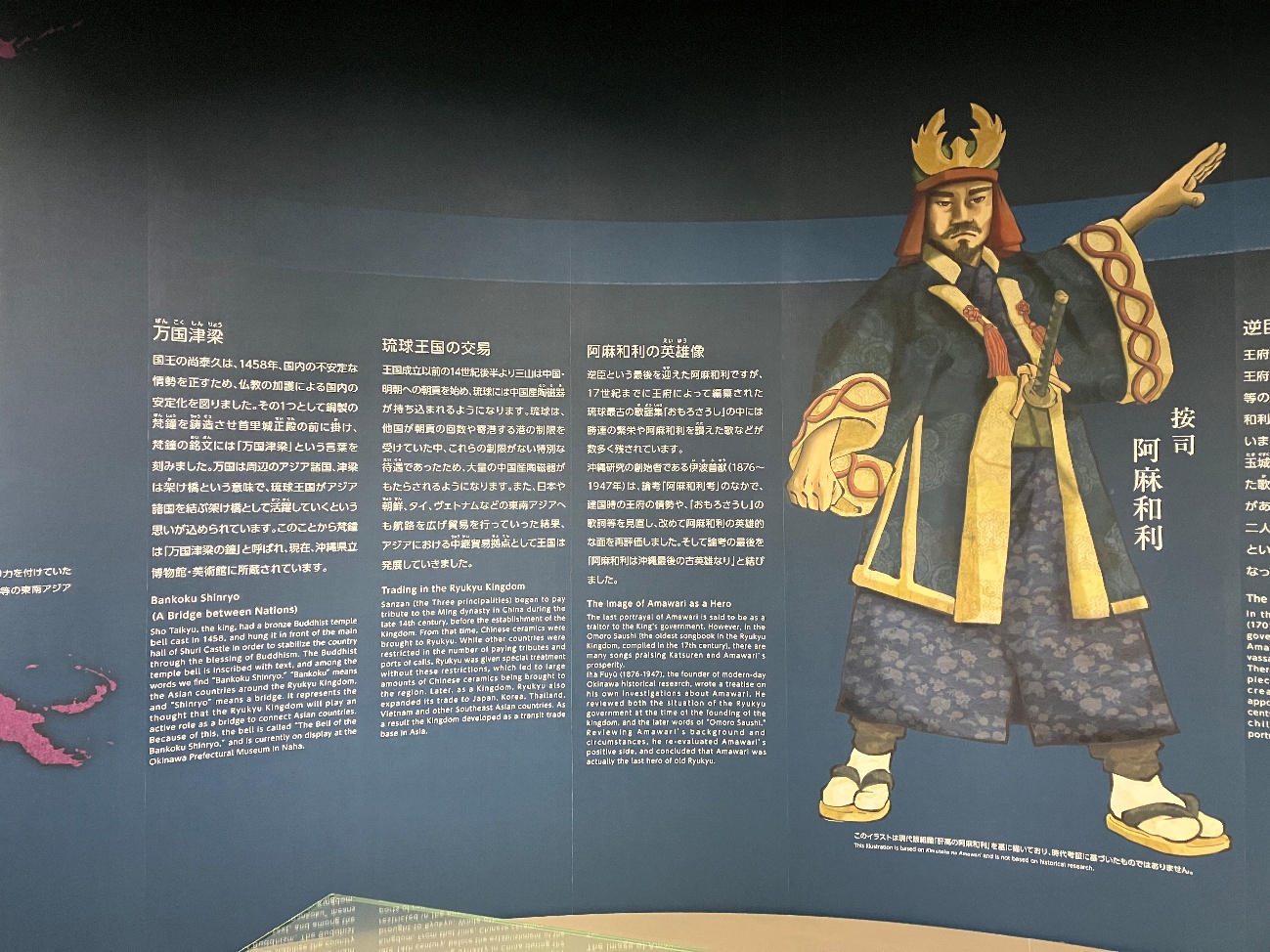 勝連城の10代目城主であり、阿麻和利(あまわり)の生涯や当時の貿易の様子を、紹介しています。