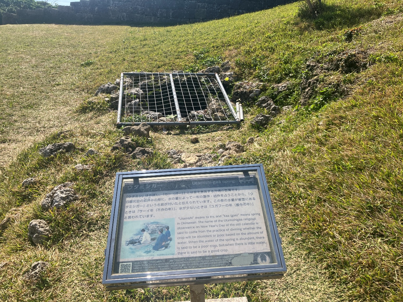 「ウタミシ」はお試し、「カー (ガー)」とは泉を意味する沖縄の言葉です。