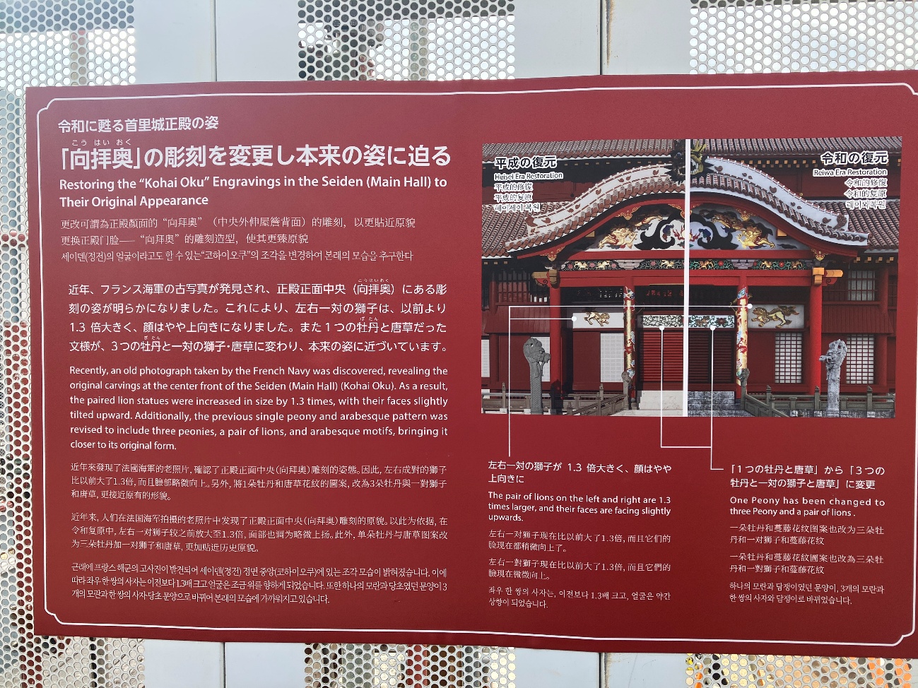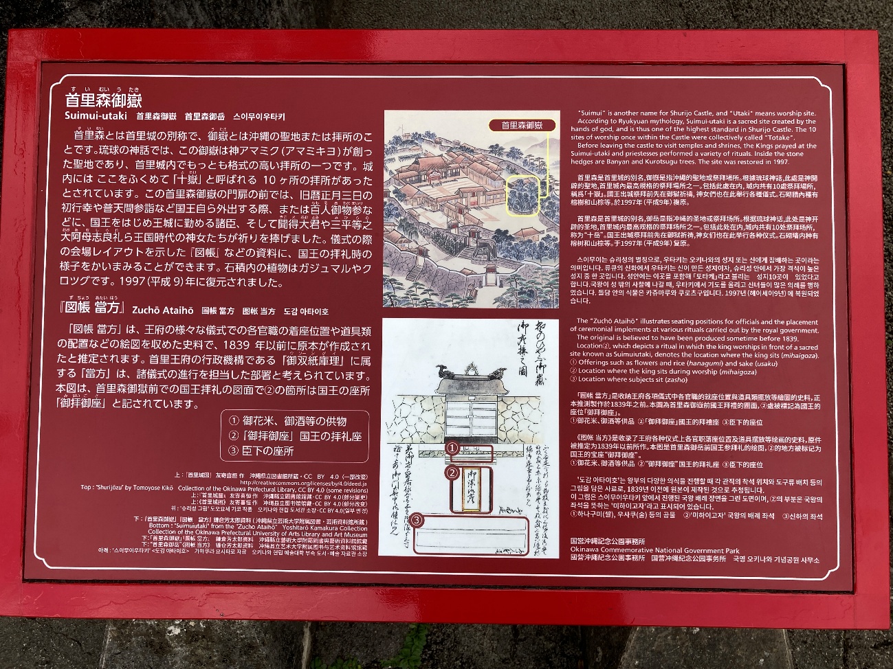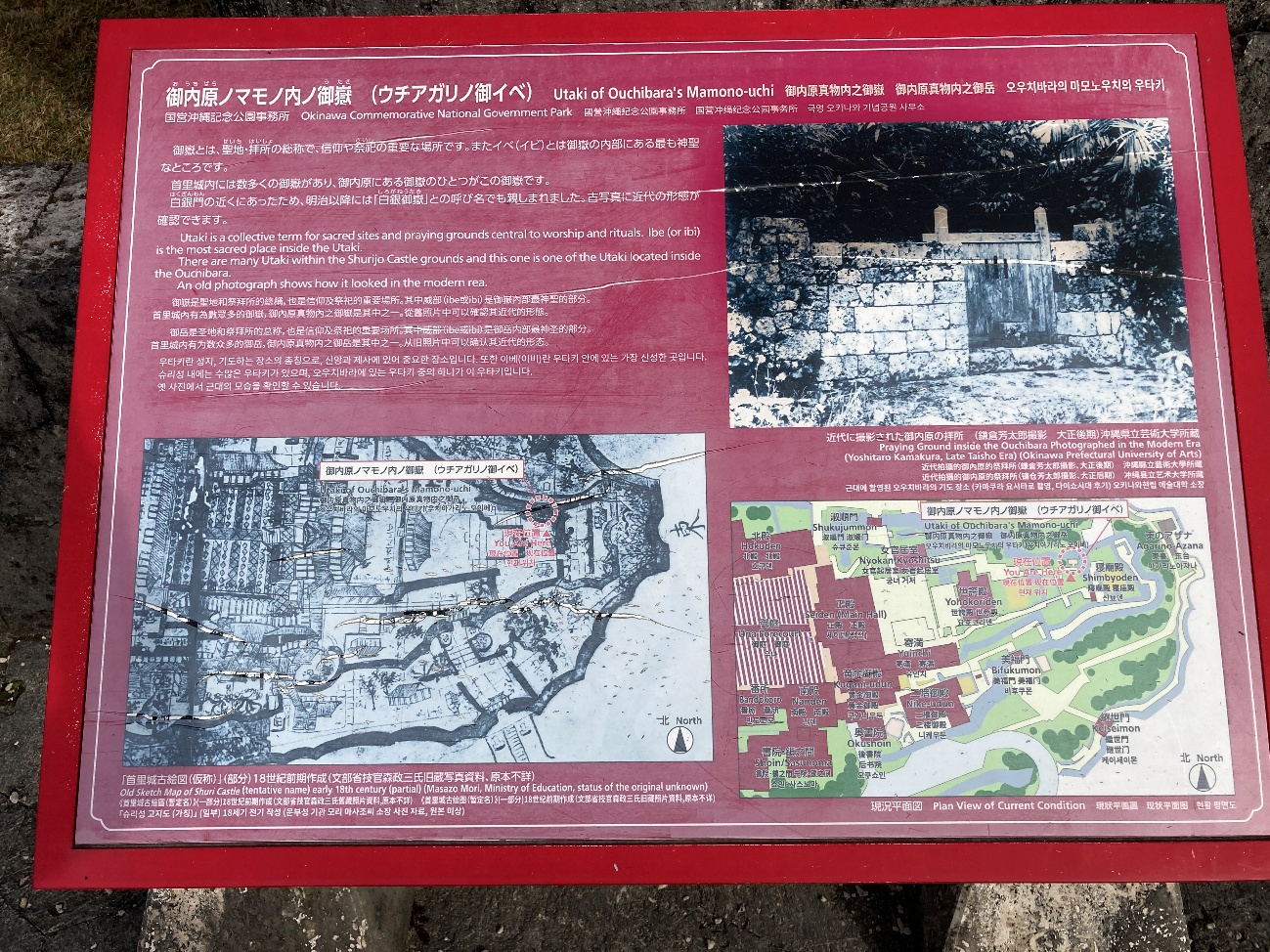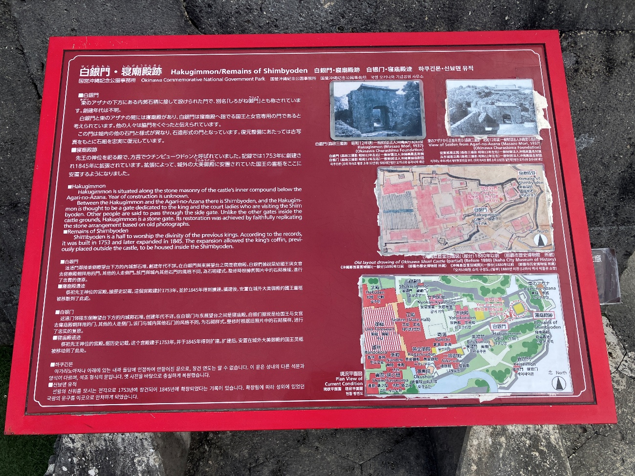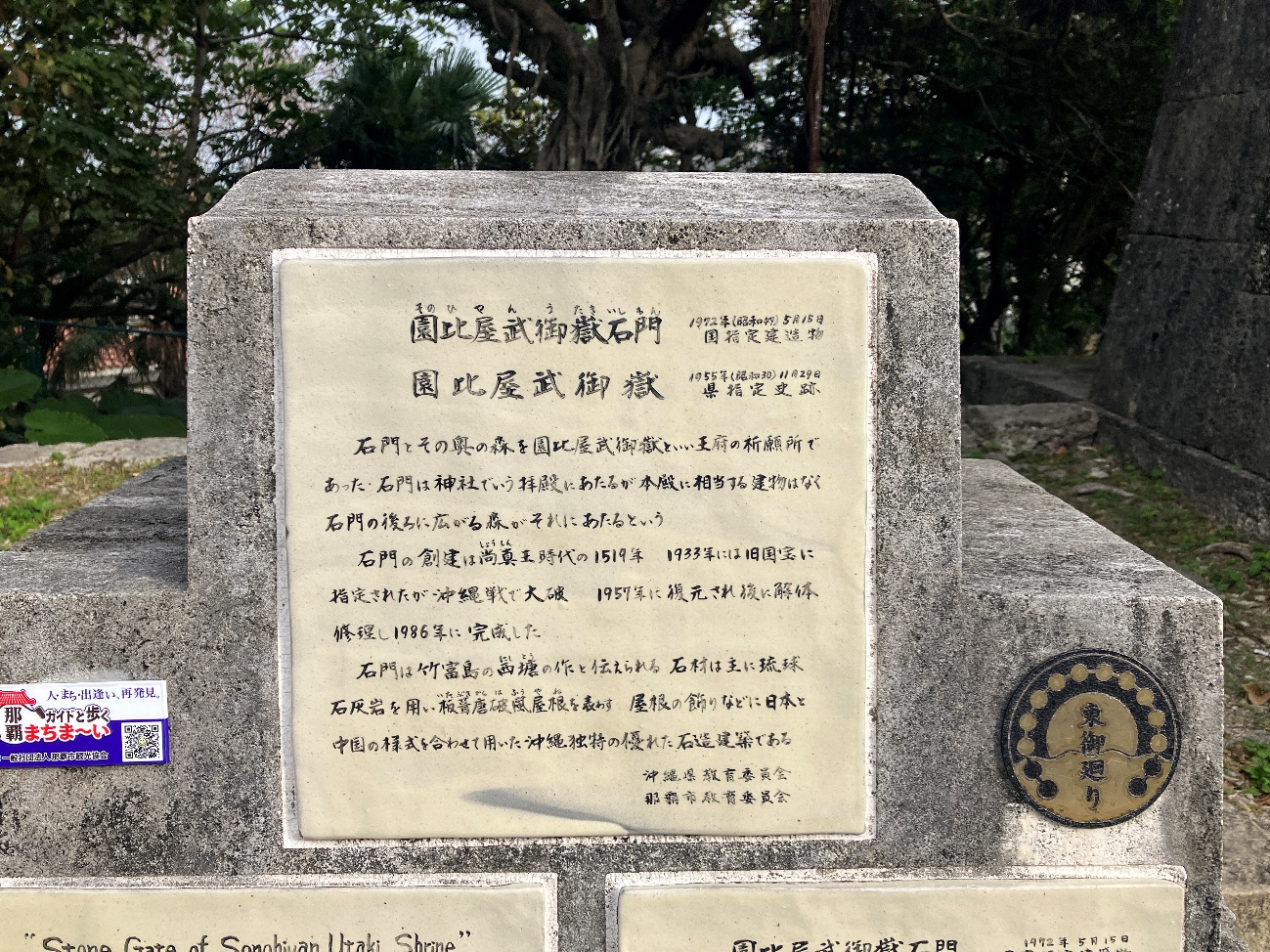 沖縄戦でほとんどが破壊されましたが、 拓本をもとに1996年(平成8)年に復元されました。