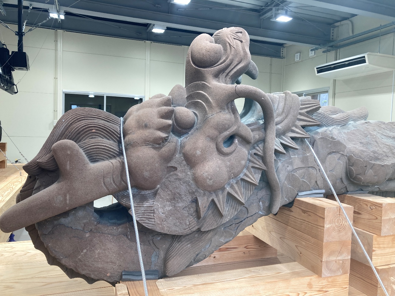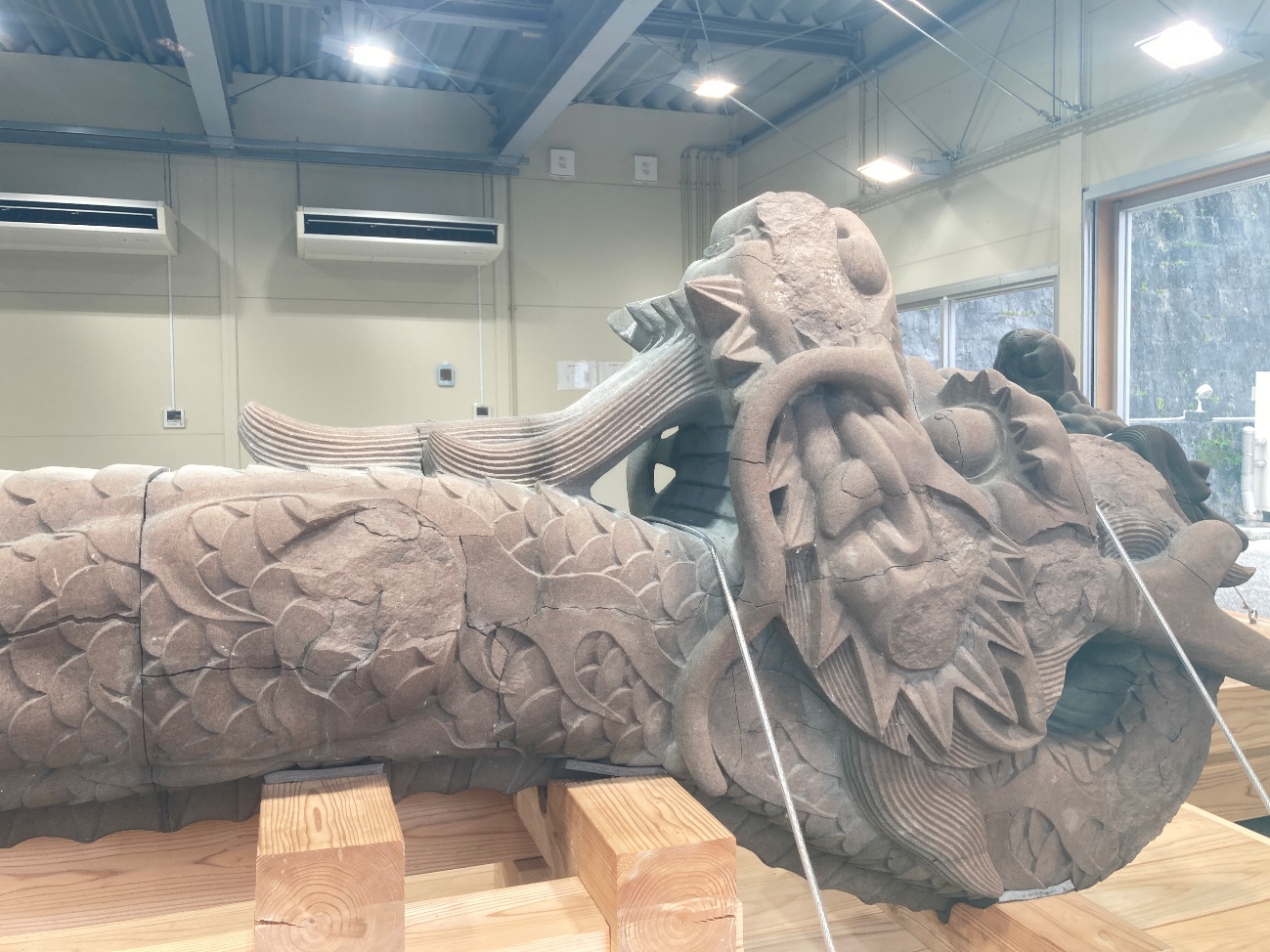 この龍頭は1523年に中国から持ち帰られたもので、沖縄戦の戦火を免れた首里城に残る数少ない「当時のオリジナル」の一つです。