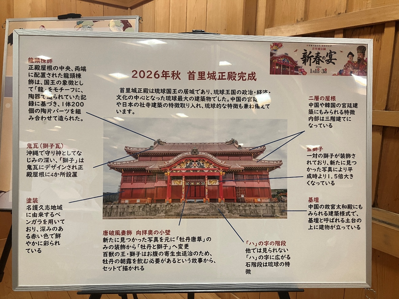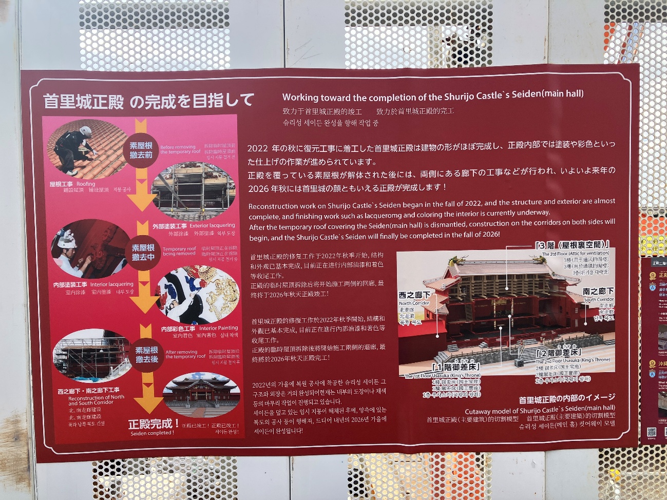 残念ながら2019年の火災により正殿を含む主要な建物が焼失してしまいましたが、現在は2026年の正殿再建を目指して復元作業が進められています。