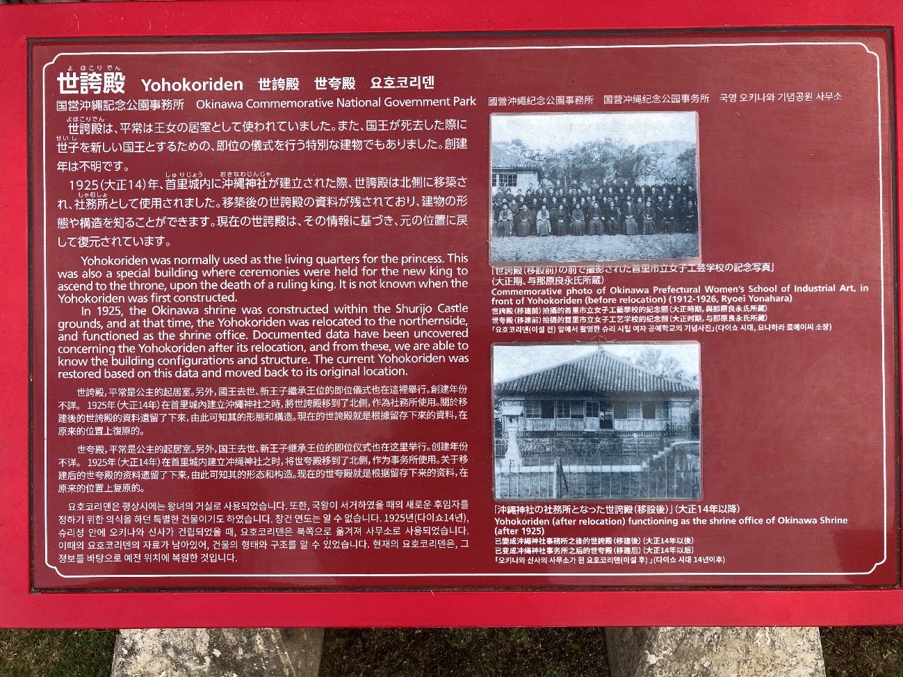 しかし、これらの建物群は、沖縄戦ですべて焼失し、 1972年から復元整備が実施されています。