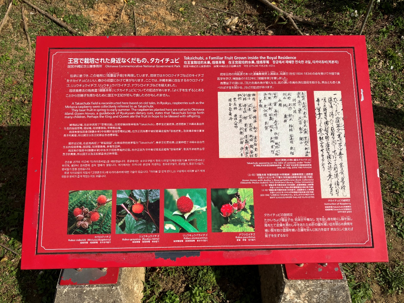 伝承に基づき、この場所に 「高覆盆子(たかいちゅび)畑」を再現しています。