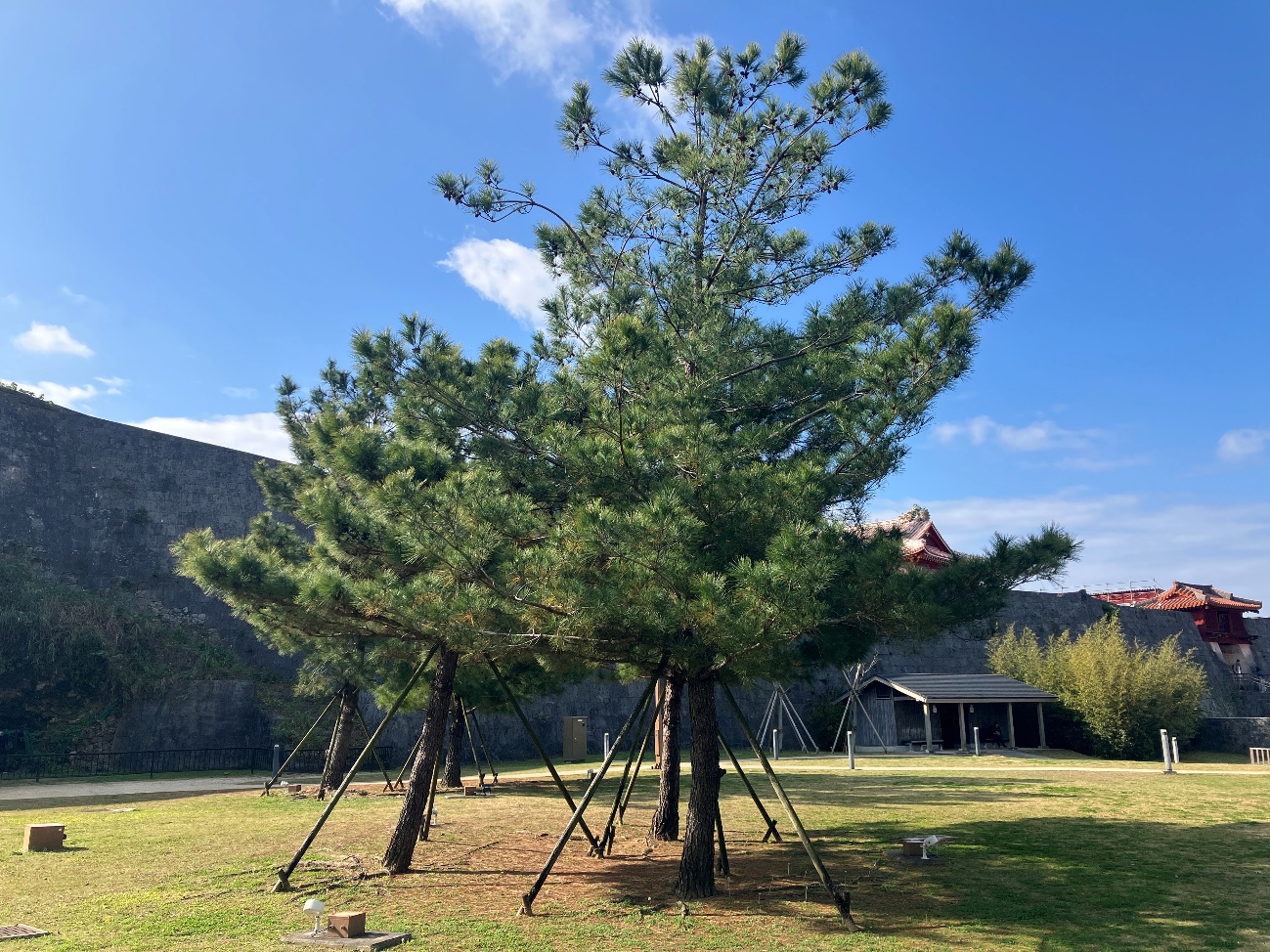 琉球王国が育成に努めたリュウキュウマツ古地図や伝承に基づき、リュウキュウマツ(トカラ列島以南に分布する南西諸島固有のマツ)の大木を再現しています。
